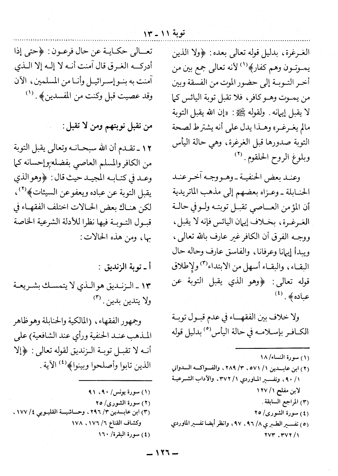 أ - تَوْبَةُ الزِّنْدِيقِ: