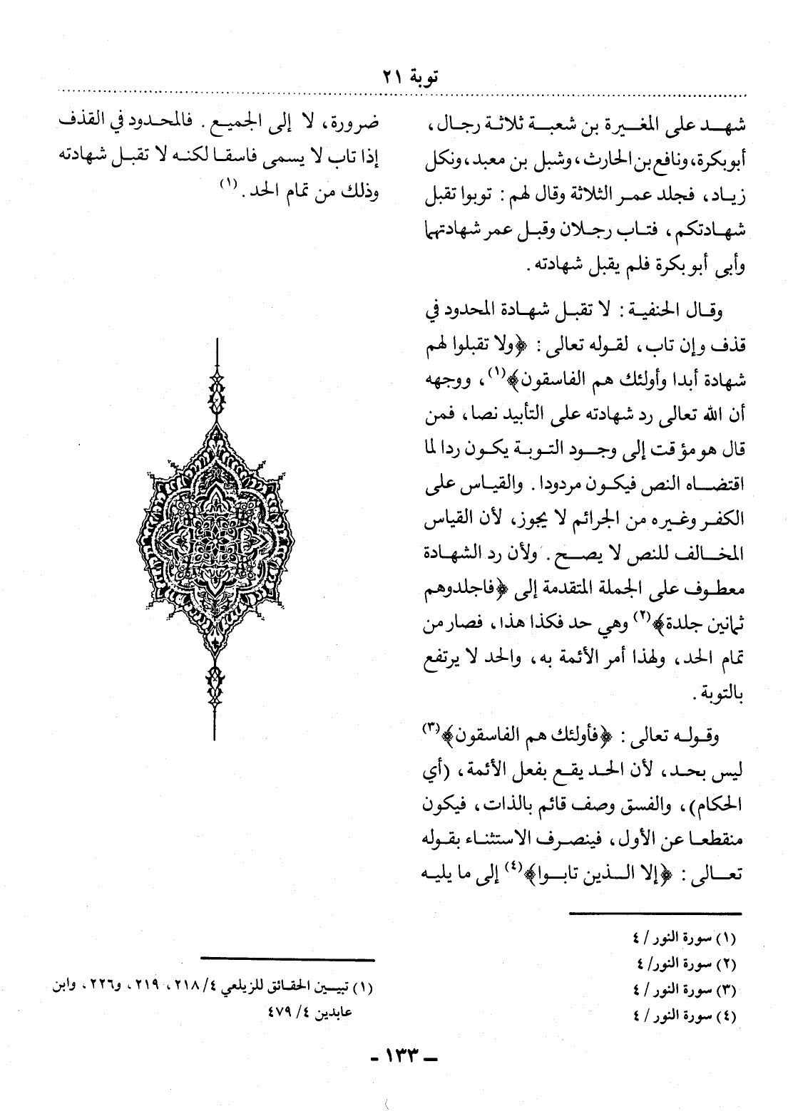 (1) تبيين الحقائق للزيلعي 4 / 218، 219، 226، وابن عابدين 4 / 479.