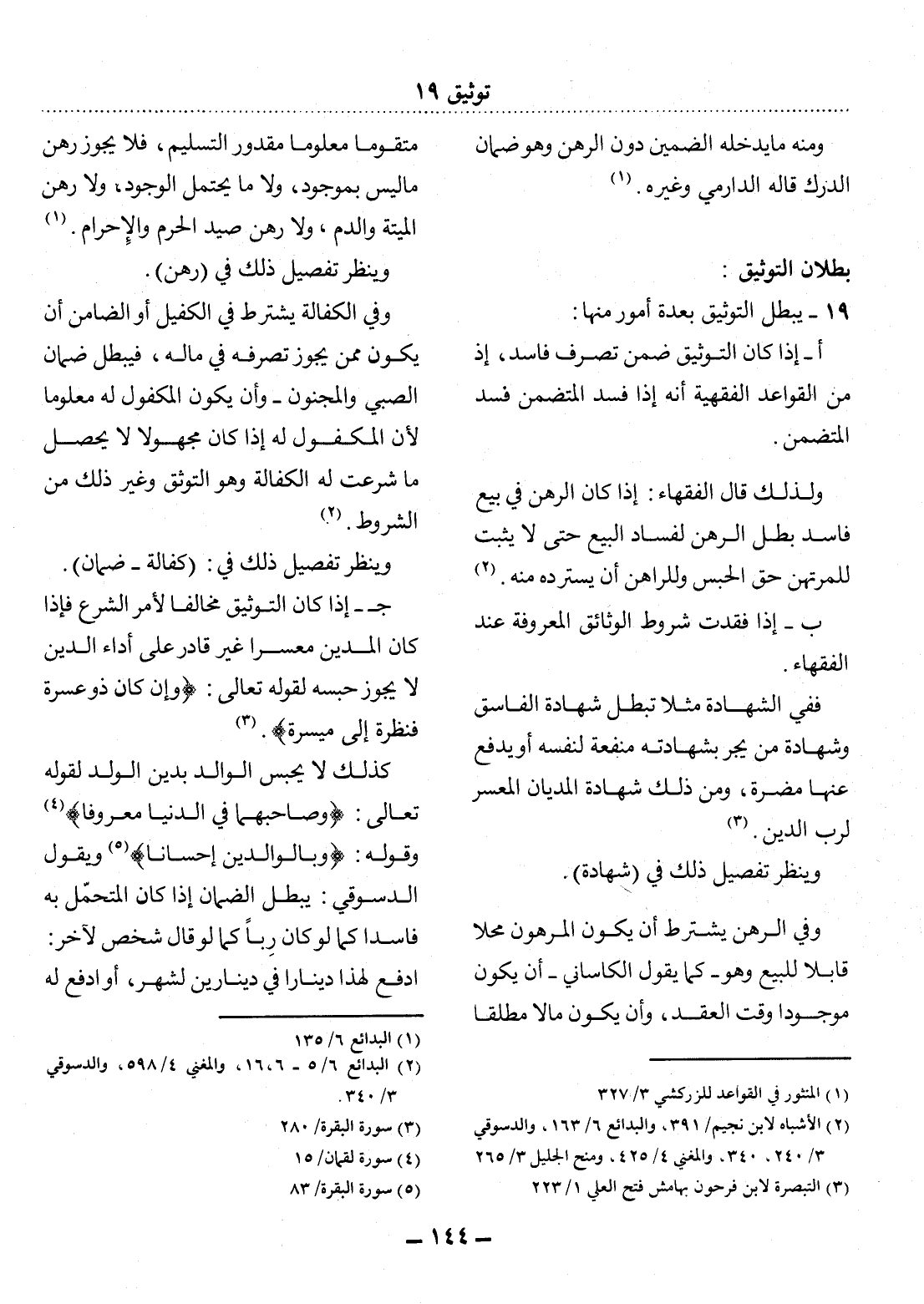 (2) الأشباه لابن نجيم / 391، والبدائع 6 / 163، والدسوقي 3 / 240، 340، والمغني 4 / 425، ومنح الجليل 3 / 265.