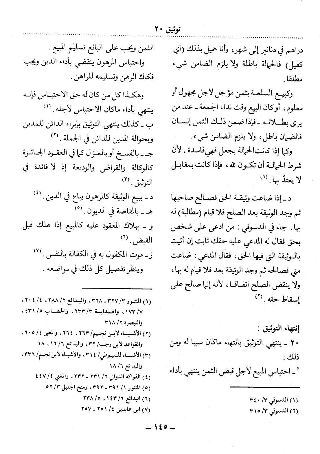 20 - يَنْتَهِي التَّوْثِيقُ بِانْتِهَاءِ مَا كَانَ سَبَبًا لَهُ وَمِنْ ذَلِكَ: