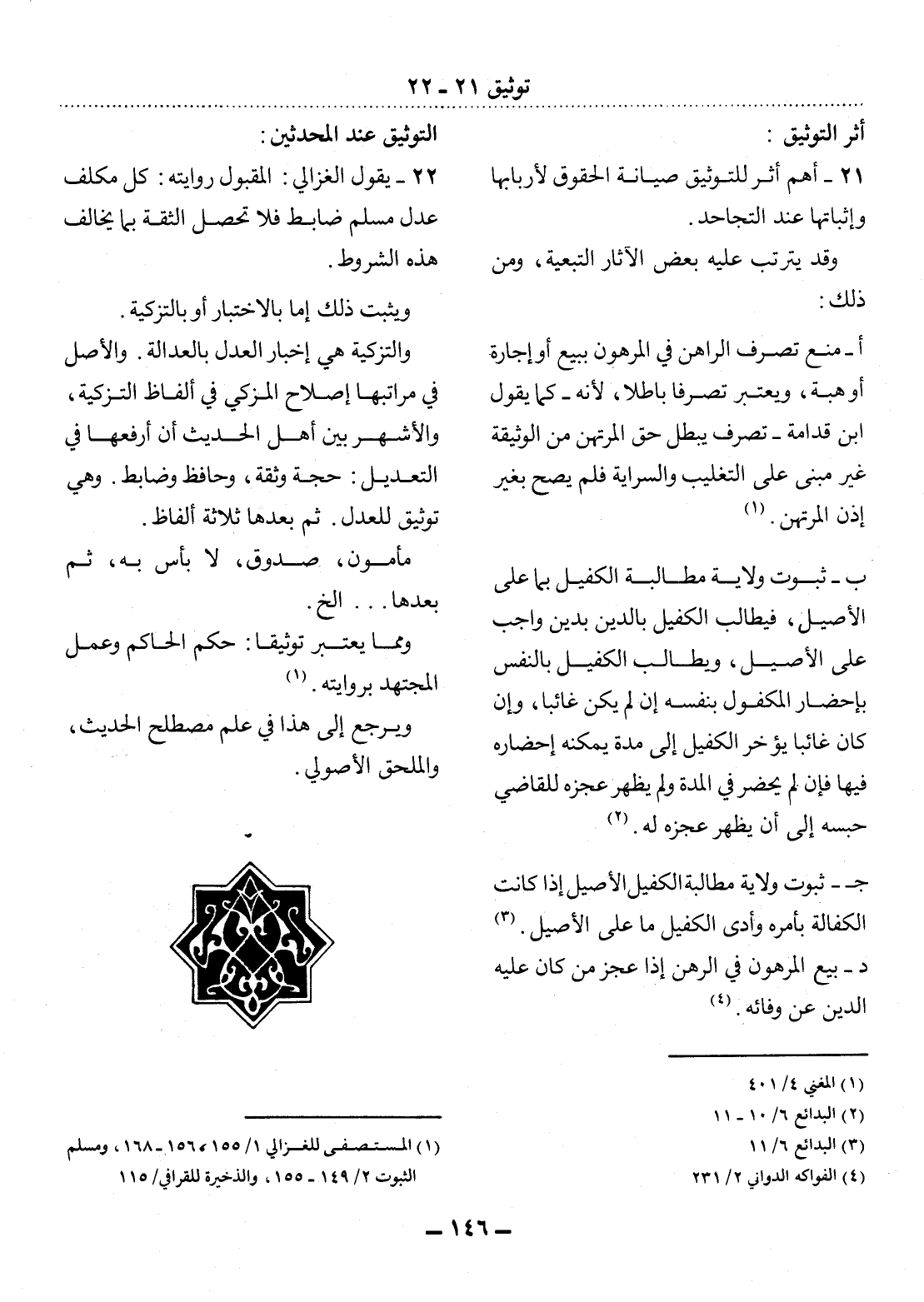 21 - أَهَمُّ أَثَرٍ لِلتَّوْثِيقِ صِيَانَةُ الْحُقُوقِ لأَِرْبَابِهَا وَإِثْبَاتُهَا عِنْدَ التَّجَاحُدِ. وَقَدْ يَتَرَتَّبُ عَلَيْهِ بَعْضُ الآْثَارِ التَّبَعِيَّةِ، وَمِنْ ذَلِكَ: