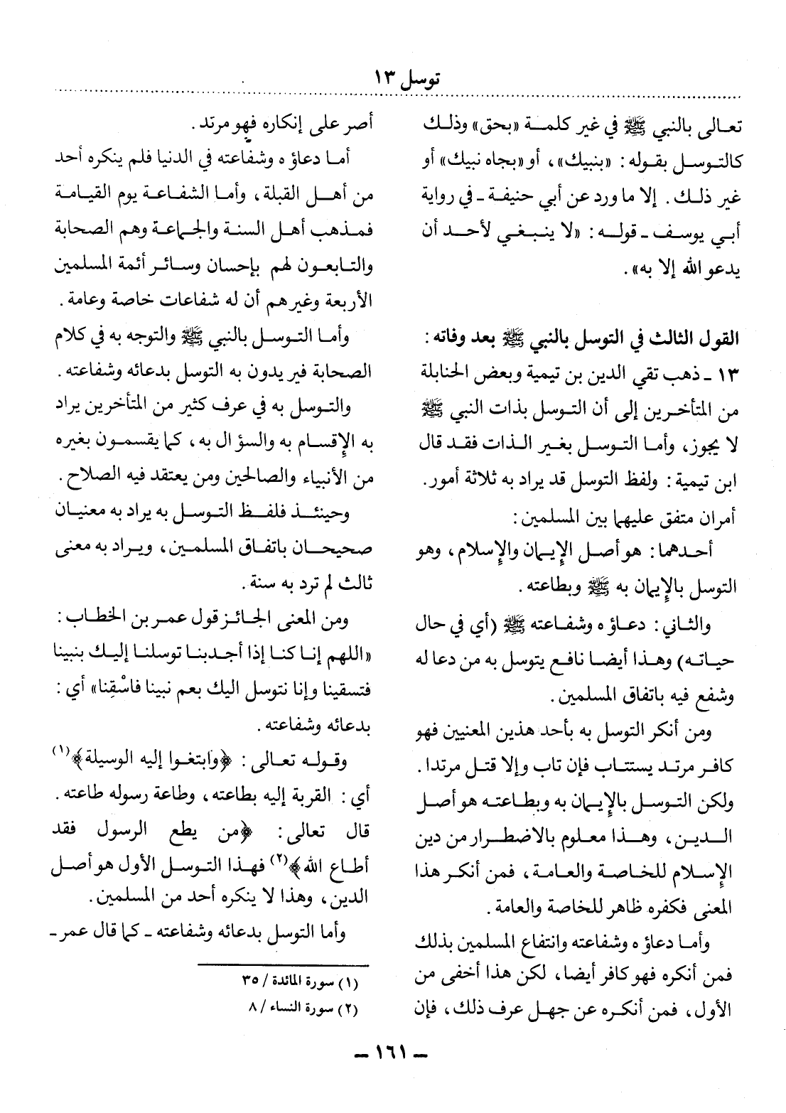 وَمَنْ أَنْكَرَ التَّوَسُّل بِهِ بِأَحَدِ هَذَيْنِ الْمَعْنَيَيْنِ فَهُوَ كَافِرٌ مُرْتَدٌّ يُسْتَتَابُ فَإِنْ تَابَ وَإِلاَّ قُتِل مُرْتَدًّا.
