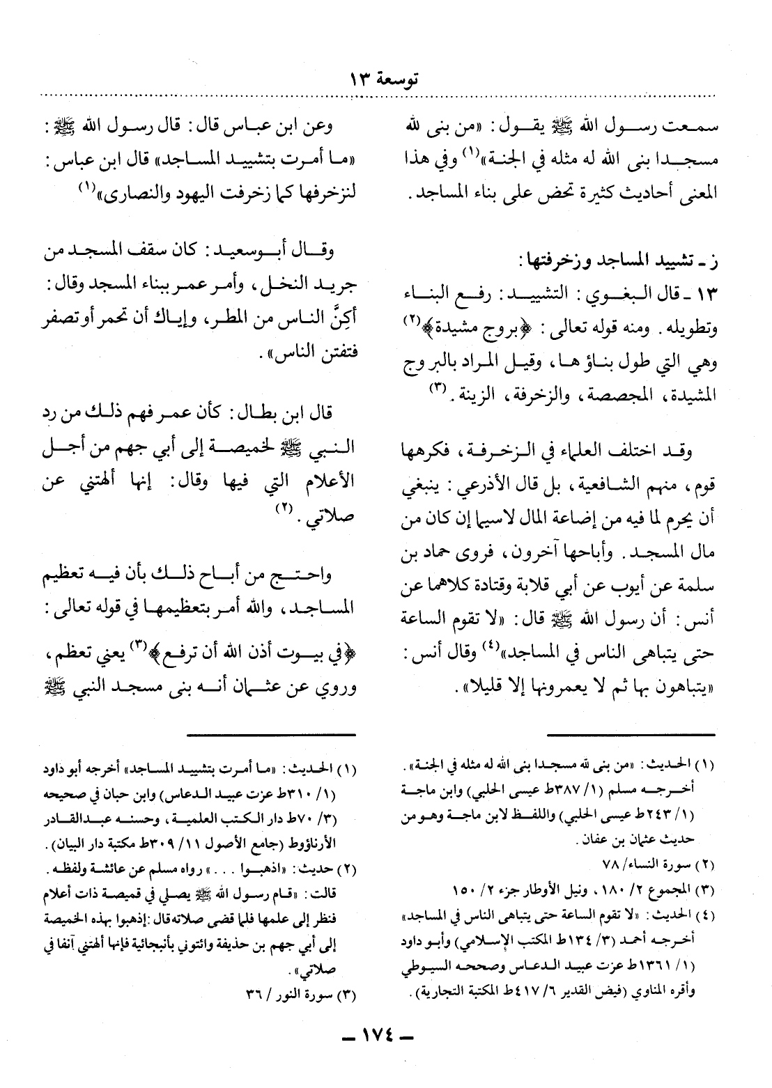 (1) الحديث: " ما أمرت بتشييد المساجد " أخرجه أبو داود (1 / 310 ط عزت عبيد الدعاس) وابن حبان في صحيحه (3 / 70 ط دار الكتب العلمية، وحسنه عبد القادر الأرناؤوط (جامع الأصول 11 / 309 ط مكتبة دار البيان)