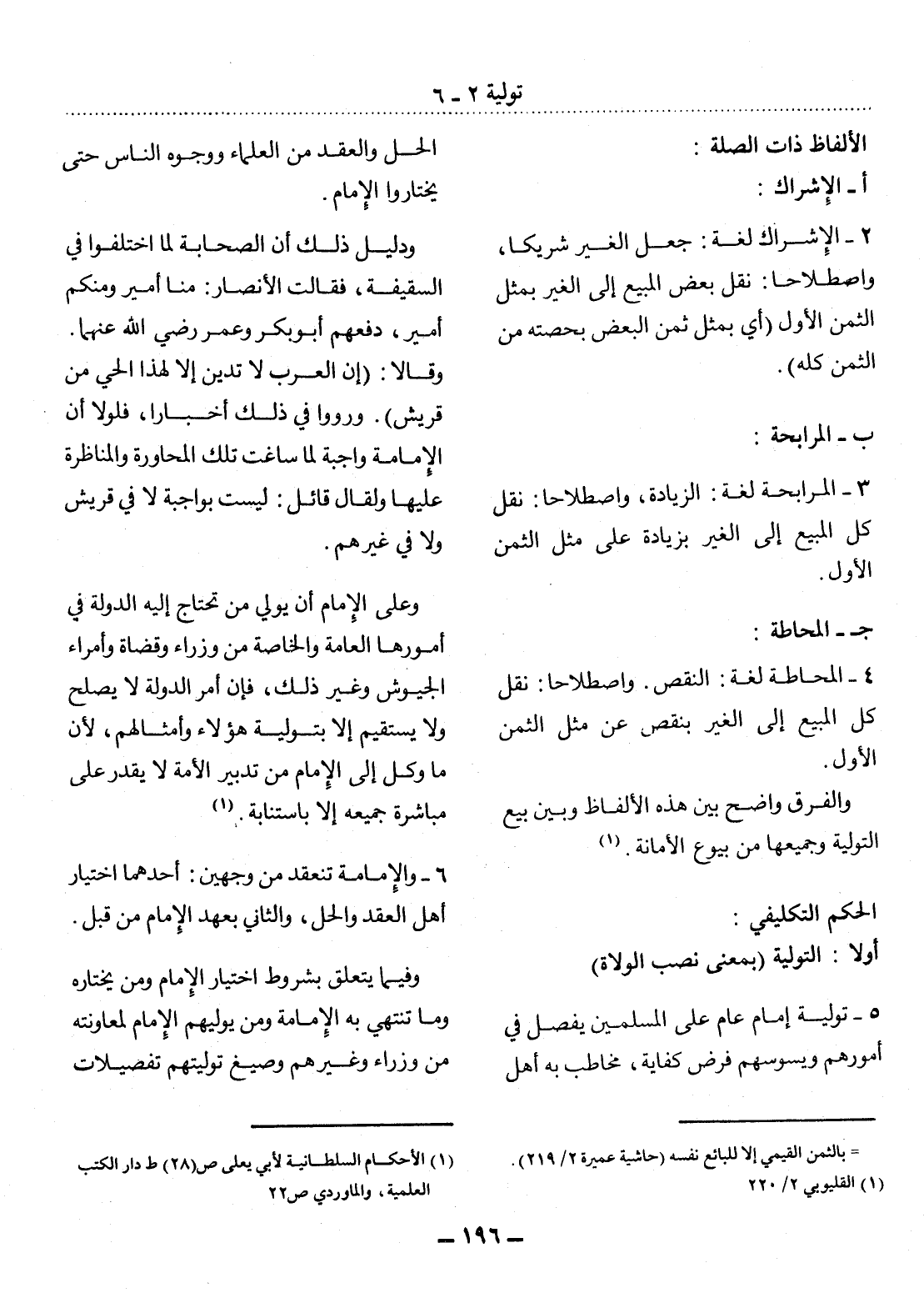(1) الأحكام السلطانية لأبي يعلى ص (28) ط دار الكتب العلمية، والماوردي ص22.
