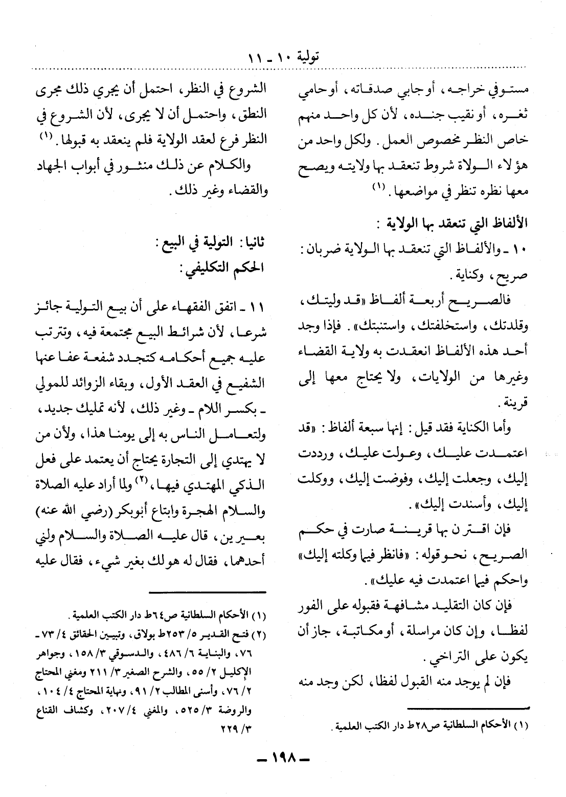 10 - وَالأَْلْفَاظُ الَّتِي تَنْعَقِدُ بِهَا الْوِلاَيَةُ ضَرْبَانِ: صَرِيحٌ، وَكِنَايَةٌ.