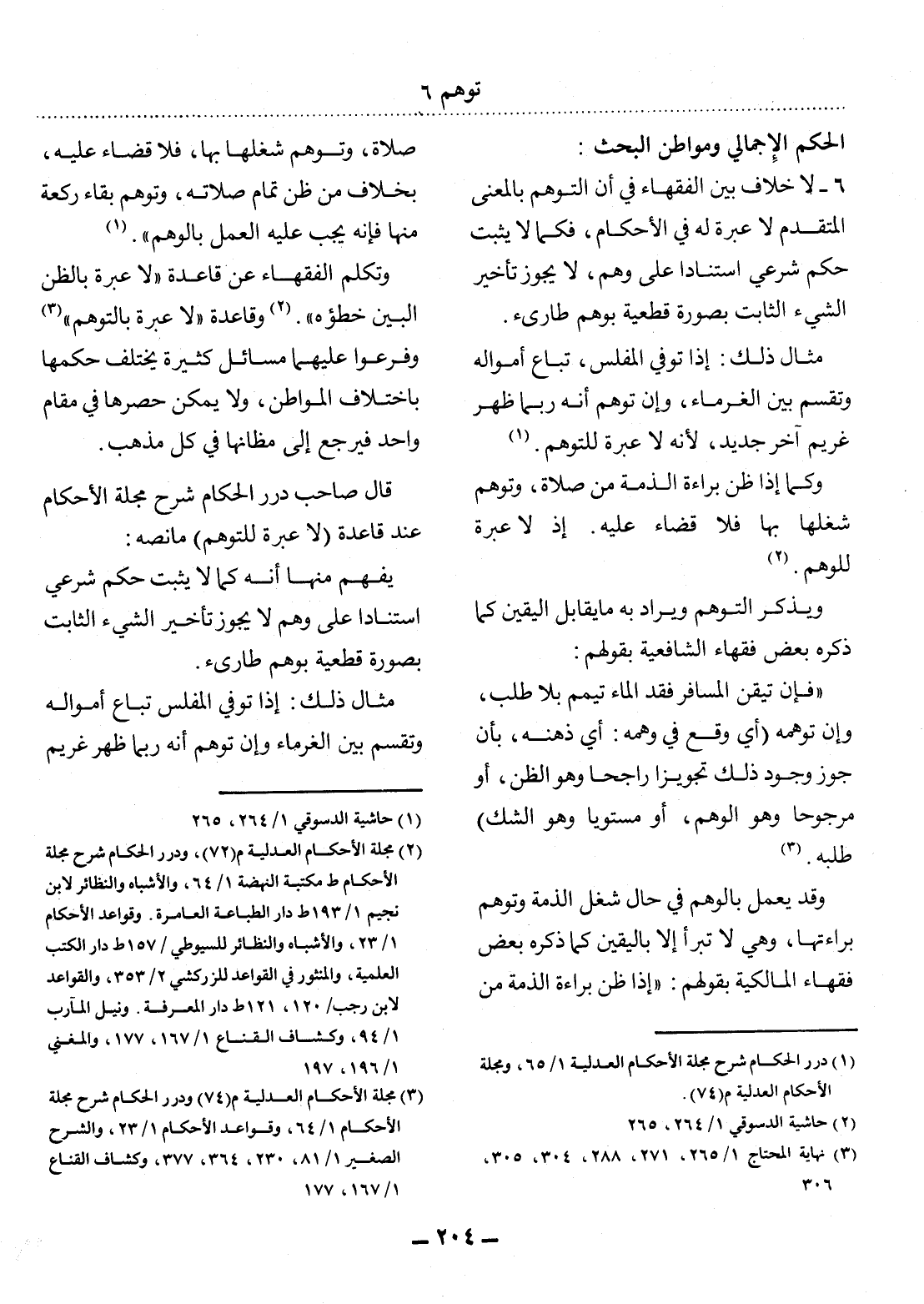 قَال صَاحِبُ دُرَرِ الْحُكَّامِ شَرْحِ مَجَلَّةِ الأَْحْكَامِ عِنْدَ قَاعِدَةِ (لاَ عِبْرَةَ لِلتَّوَهُّمِ) مَا نَصُّهُ: