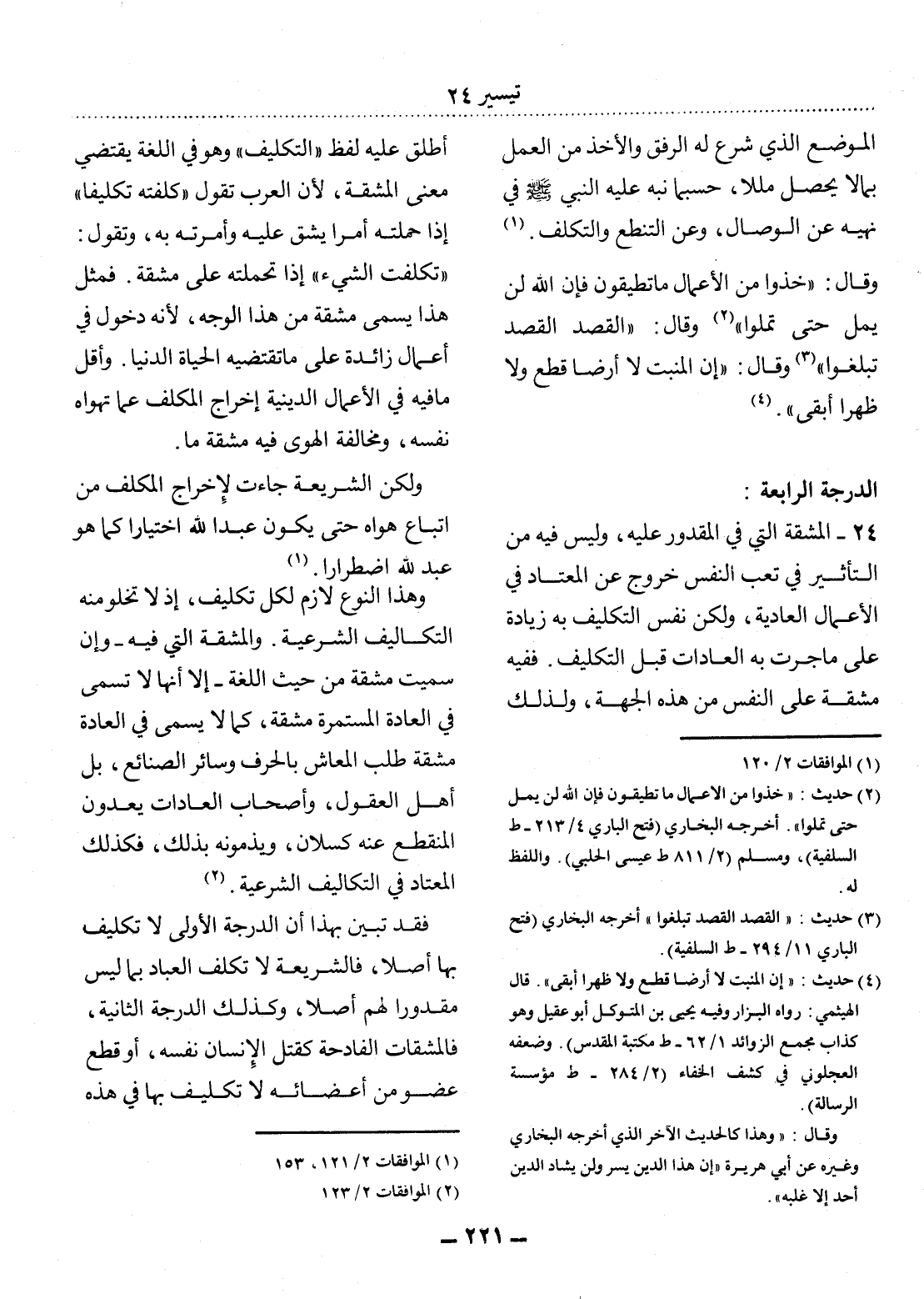 (2) حديث: " خذوا من الأعمال ما تطيقون فإن الله لن يمل حتى تملوا "، أخرجه البخاري (فتح الباري 4 / 213 - ط السلفية) ، ومسلم (2 / 811 ط عيسى الحلبي) ، واللفظ له.