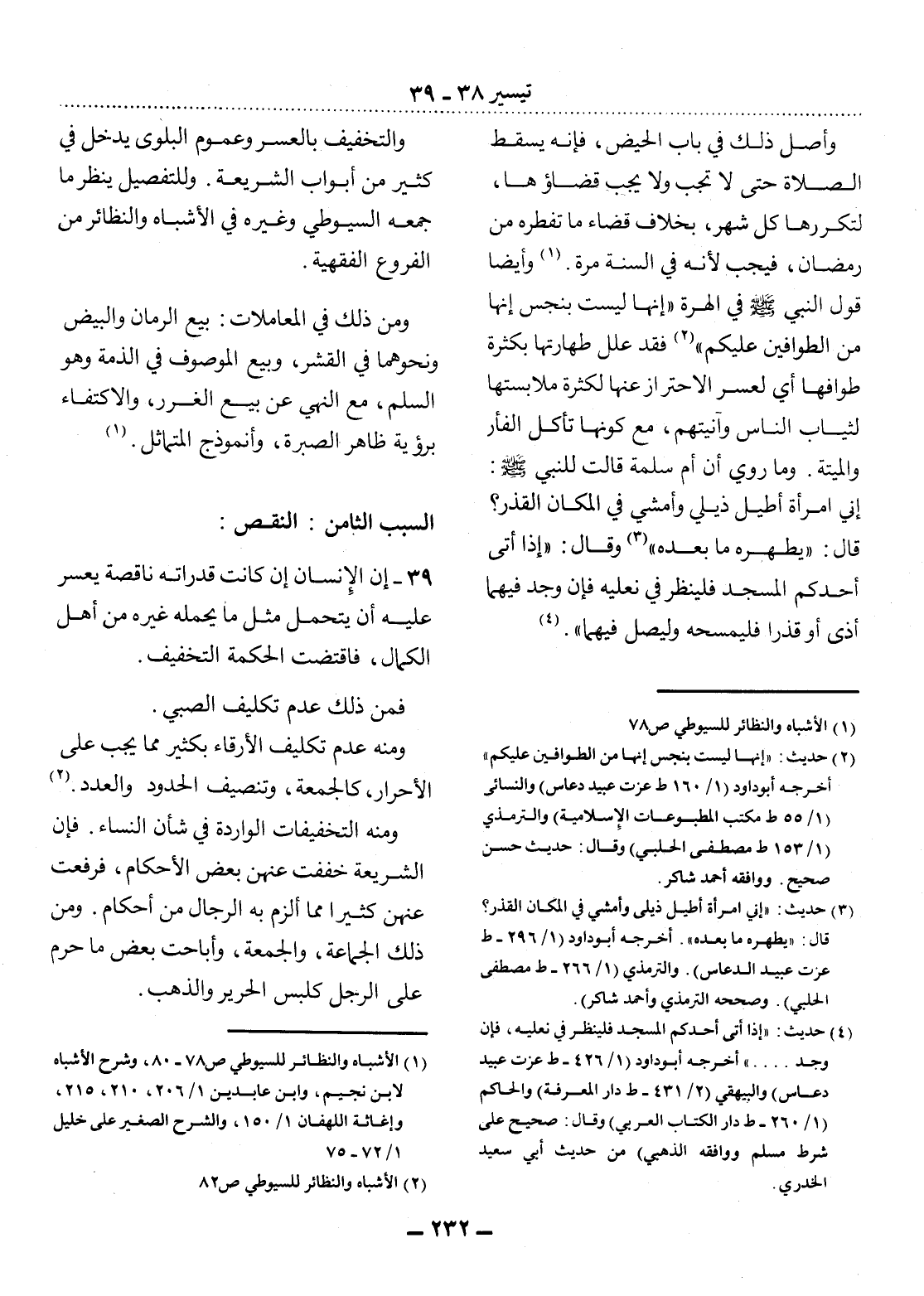 (1) الأشباه والنظائر للسيوطي ص78 - 80، وشرح الأشباه لابن نجيم، وابن عابدين 1 / 206، 210، 215، وإغاثة اللهفان 1 / 150، والشرح الصغير على خليل 1 / 72 - 75