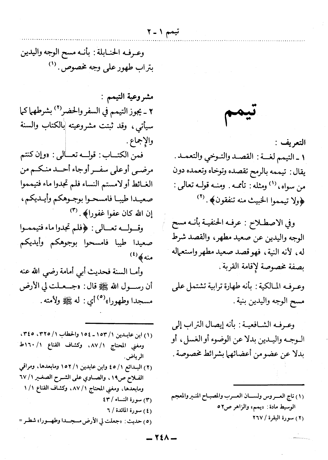 (1) تاج العروس ولسان العرب والمصباح المنير والمعجم الوسيط مادة: " يمم " والزاهر ص52.