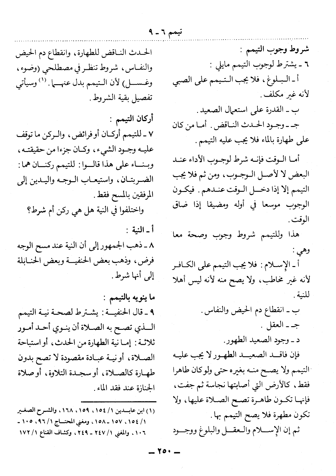 6 - يُشْتَرَطُ لِوُجُوبِ التَّيَمُّمِ مَا يَلِي: