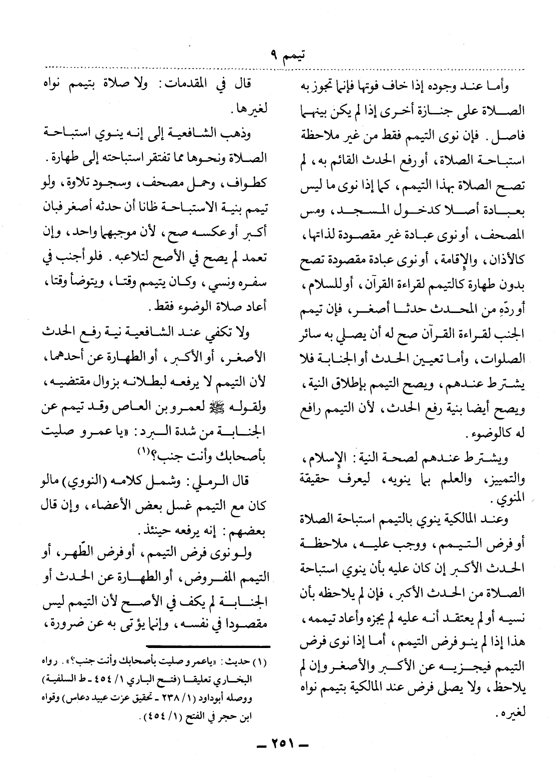 (1) حديث: " يا عمرو صليت بأصحابك وأنت جنب؟ ". رواه البخاري تعليقًا (فتح الباري 1 / 454 - ط السلفية) ووصله أبو داود (1 / 238 - تحقيق عزت عبيد دعاس) وقواه ابن حجر (1 / 454) .