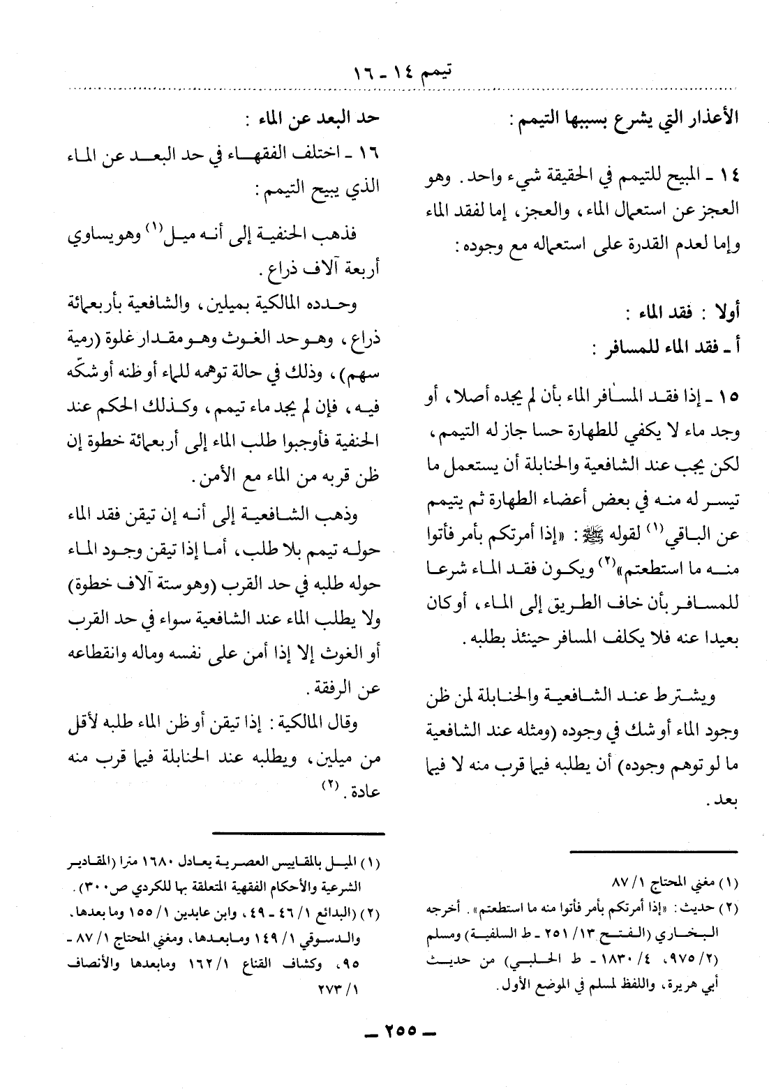 (2) (البدائع 1 / 46 - 49، وابن عابدين 1 / 155 وما بعدها. والدسوقي 1 / 149 وما بعدها، ومغني المحتاج 1 / 87 - 95، وكشاف القناع 1 / 162 وما بعدها والأنصاف 1 / 273.