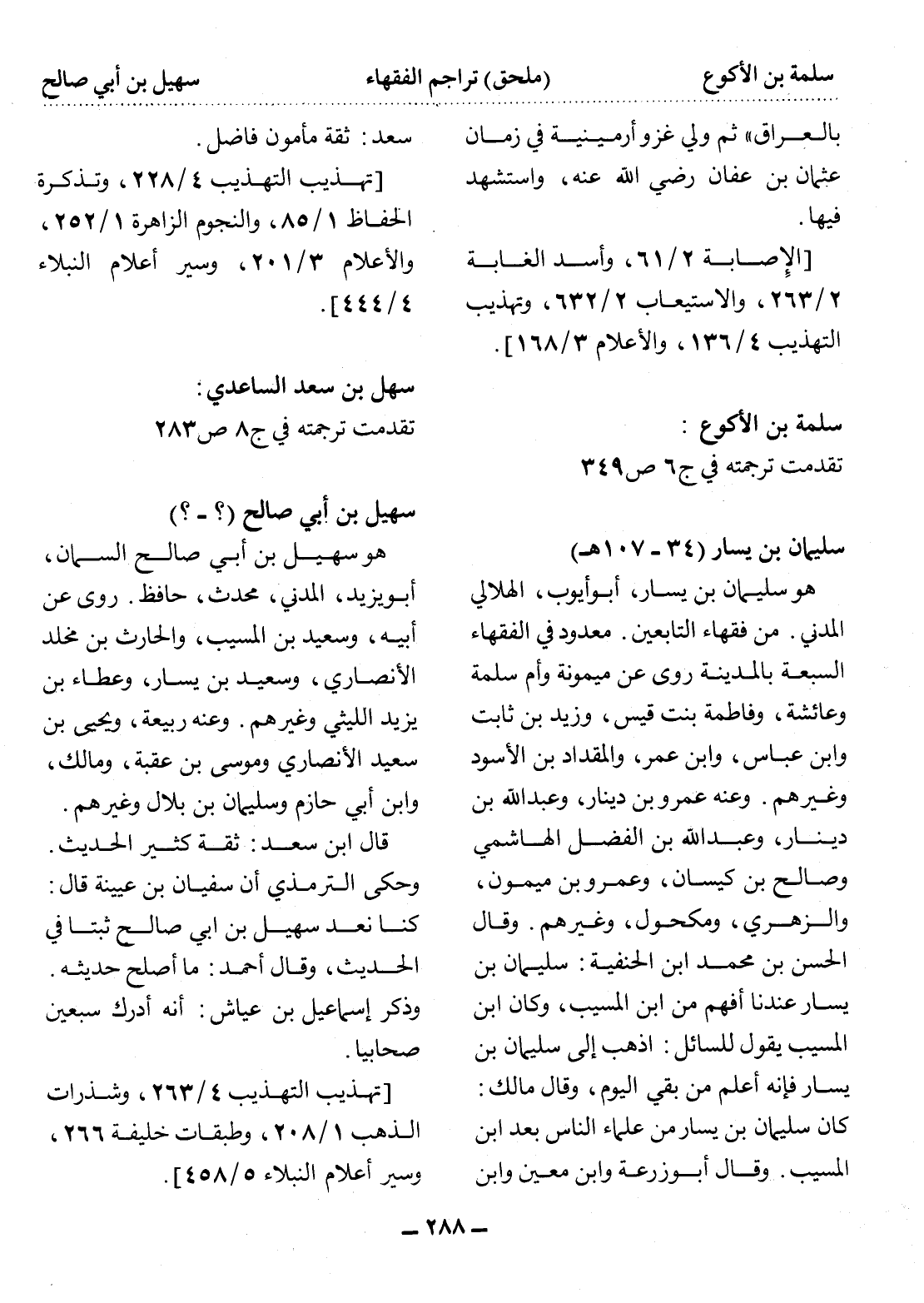 هو سليمان بن يسار، أبو أيوب، الهلالي المدني. من فقهاء التابعين. معدود في الفقهاء السبعة بالمدينة. روى عن ميمونة وأم سلمة وعائشة، وفاطمة بنت قيس، وزيد بن ثابت وابن عباس، وابن عمر، والمقداد بن الأسود وغيرهم. وعنه عمرو بن دينار، وعبد الله بن دينار، وعبد الله بن الفضل الهاشمي وصالح بن كيسان، وعمرو بن ميمون، والزهري، ومكحول، وغيرهم. وقال الحسن بن محمد ابن الحنفية: سليمان بن يسار عندنا أفهم من ابن المسيب، وكان ابن المسيب يقول للسائل: اذهب إلى سليمان بن يسار فإنه أعلم من بقي اليوم، وقال مالك: كان سليمان بن يسار من علماء الناس بعد ابن المسيب. وقال أبو زرعة وابن معين وابن
