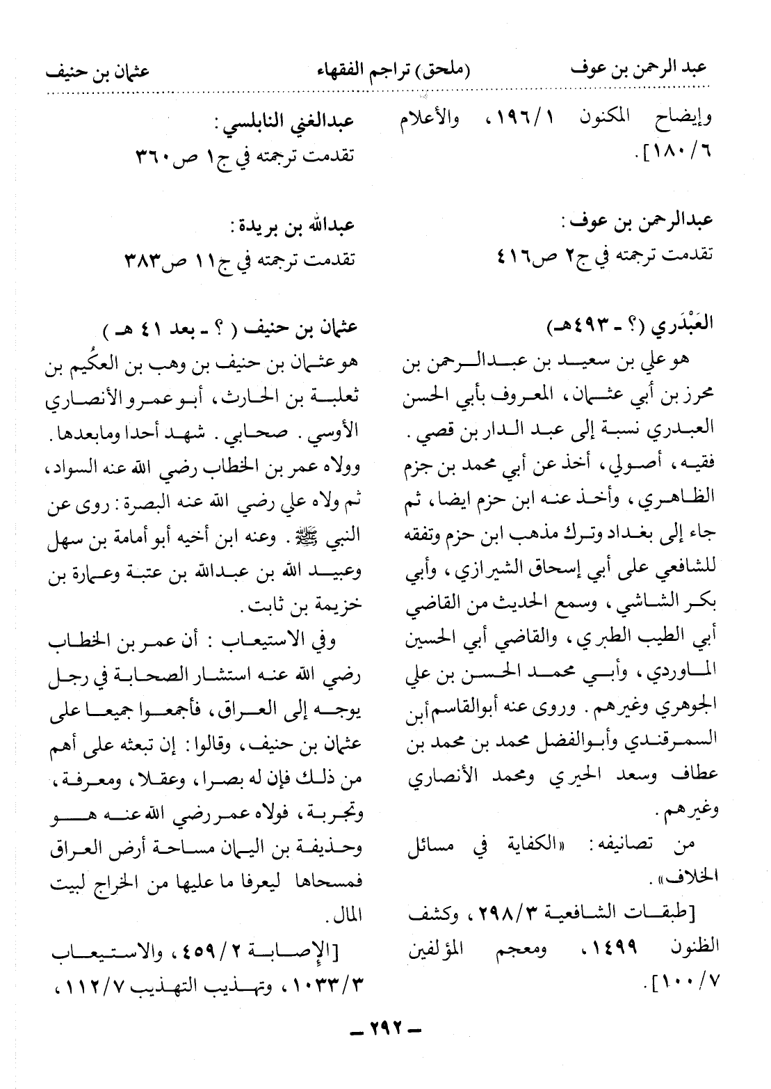 [طبقات الشافعية 3 / 298، وكشف الظنون 1499، ومعجم المؤلفين 7 / 100] .