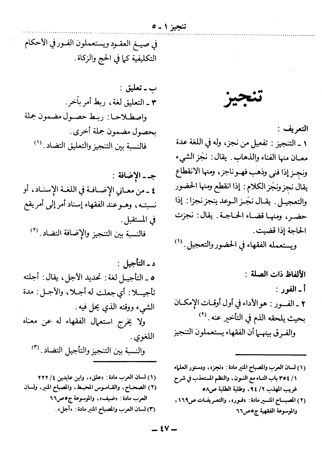 (1) لسان العرب والمصباح المنير مادة: " نجز "، ودستور العلماء 1 / 354 باب التاء مع النون، والنظم المستعذب في شرح غريب المهذب 2 / 94، وطلبة الطلبة ص58.