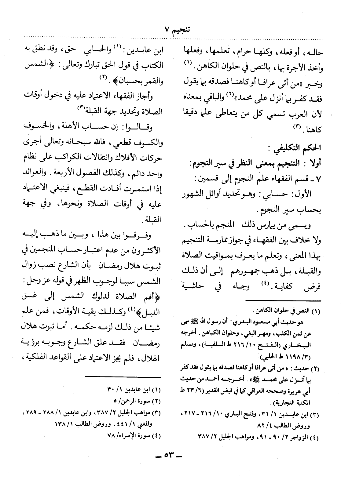 7 - قَسَّمَ الْفُقَهَاءُ عِلْمَ النُّجُومِ إِلَى قِسْمَيْنِ: