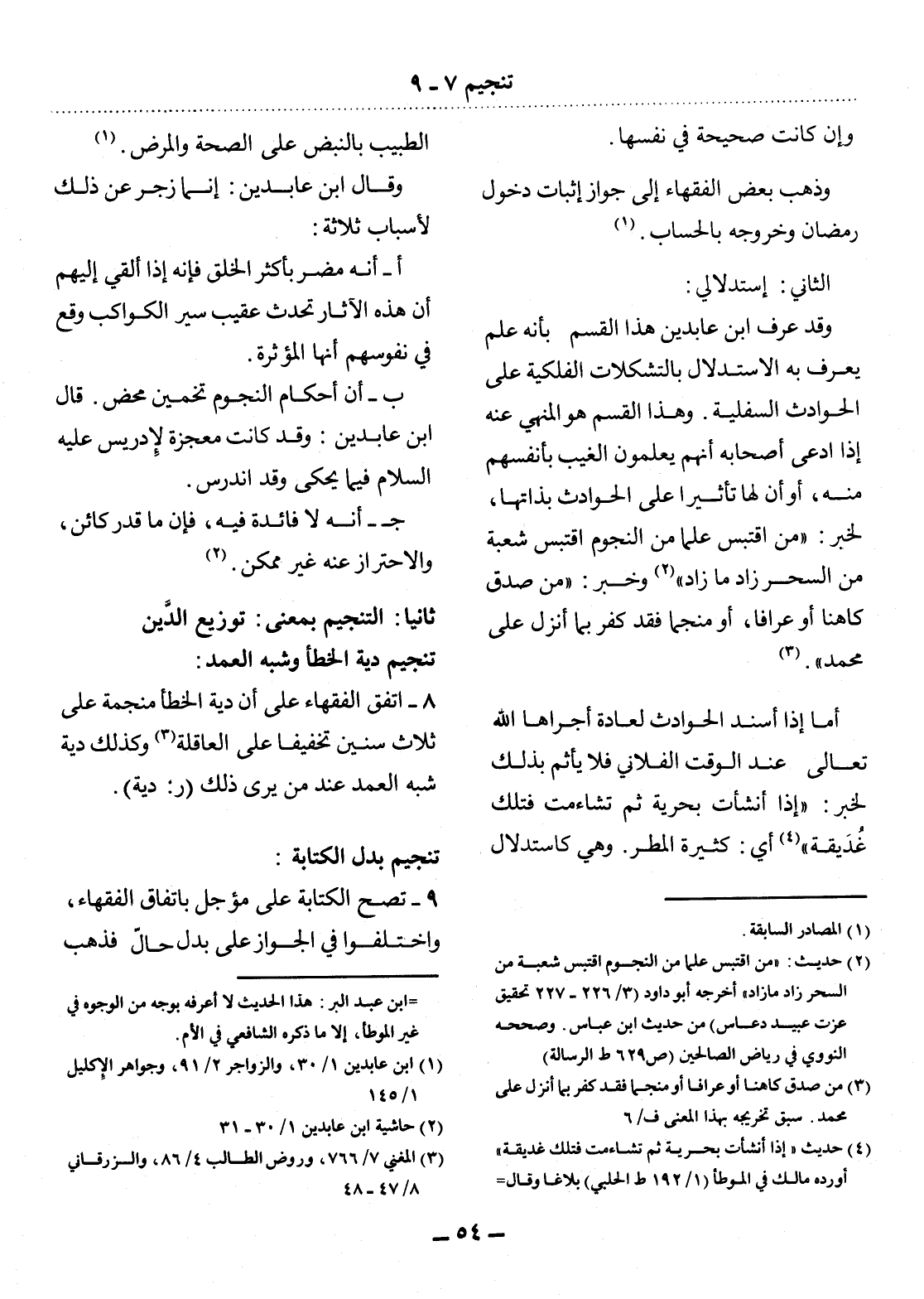 (2) حديث: " من اقتبس علما من النجوم اقتبس شعبة من السحر زاد ما زاد " أخرجه أبو داود (3 / 226 - 227 تحقيق عزت عبيد دعاس) من حديث ابن عباس. وصححه النووي في رياض الصالحين (629 ط الرسالة) .