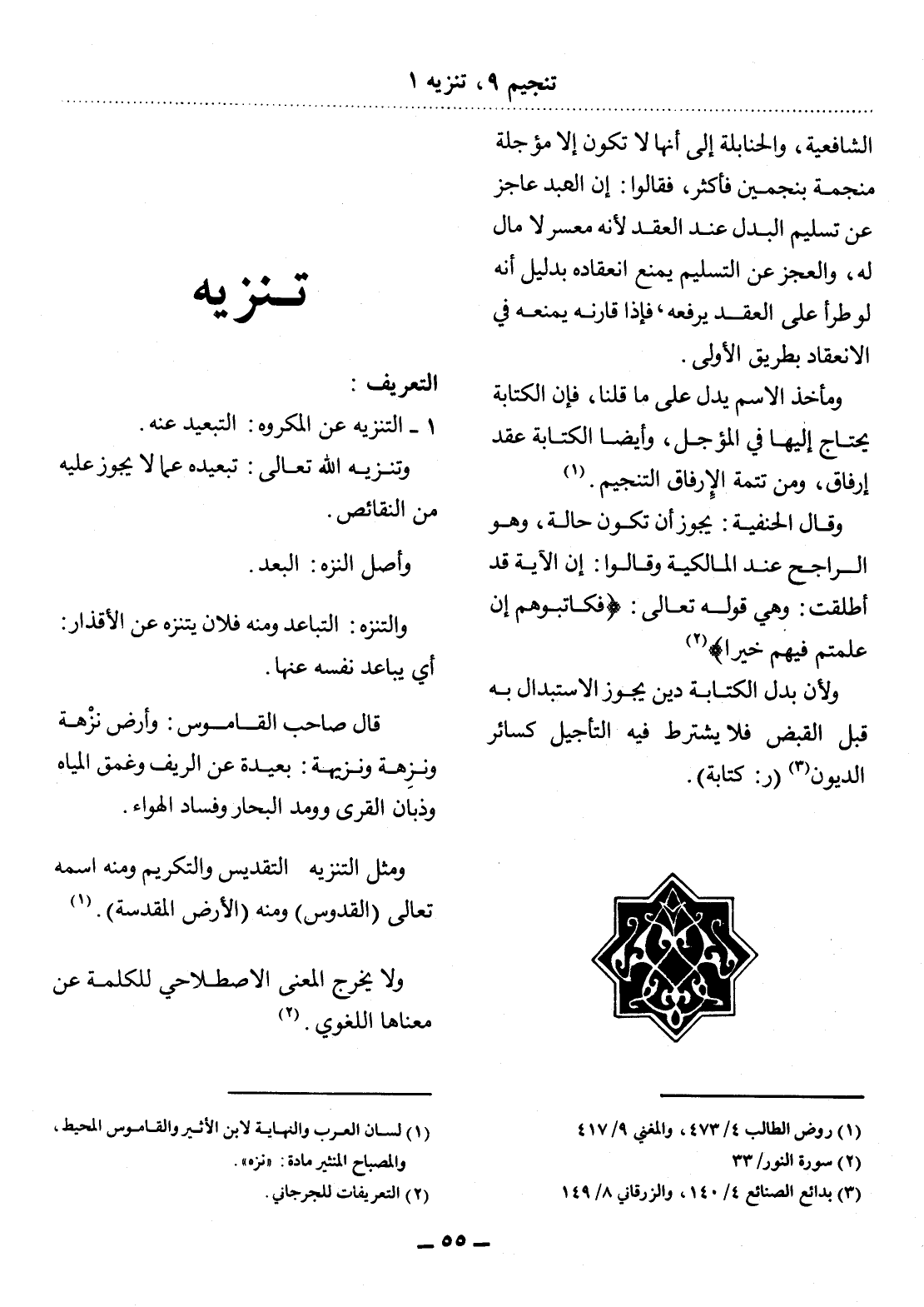 (1) لسان العرب والنهاية لابن الأثير والقاموس المحيط، والمصباح المنير مادة: " نزه ".