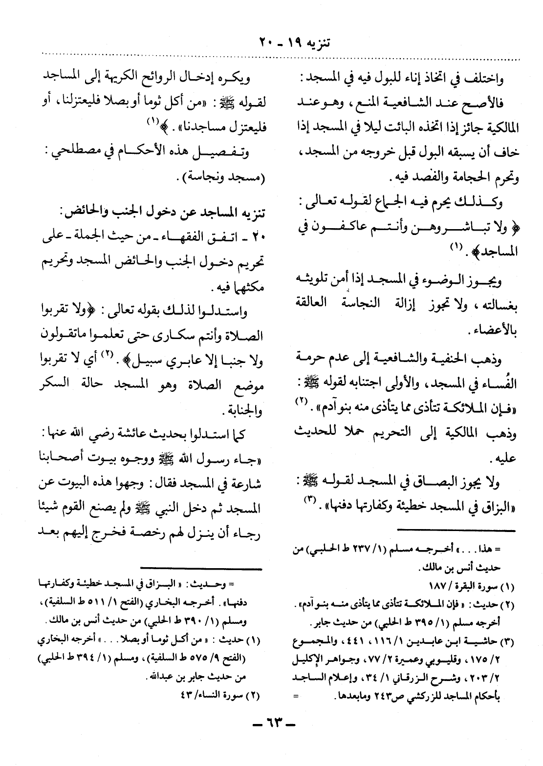 (3) حاشية ابن عابدين 1 / 116، 441، والمجموع 2 / 175، والقليوبي وعميرة 2 / 77، وجواهر الإكليل 2 / 203، وشرح الزرقاني 1 / 34، وإعلام الساجد بأحكام المساجد للزركشي ص243 وما بعدها وحديث: " البزاق في المسجد خطيئة وكفارتها دفنها " أخرجه البخاري (الفتح 1 / 511 ط السلفية) ، ومسلم (1 / 390 ط الحلبي) من حديث أنس بن مالك.