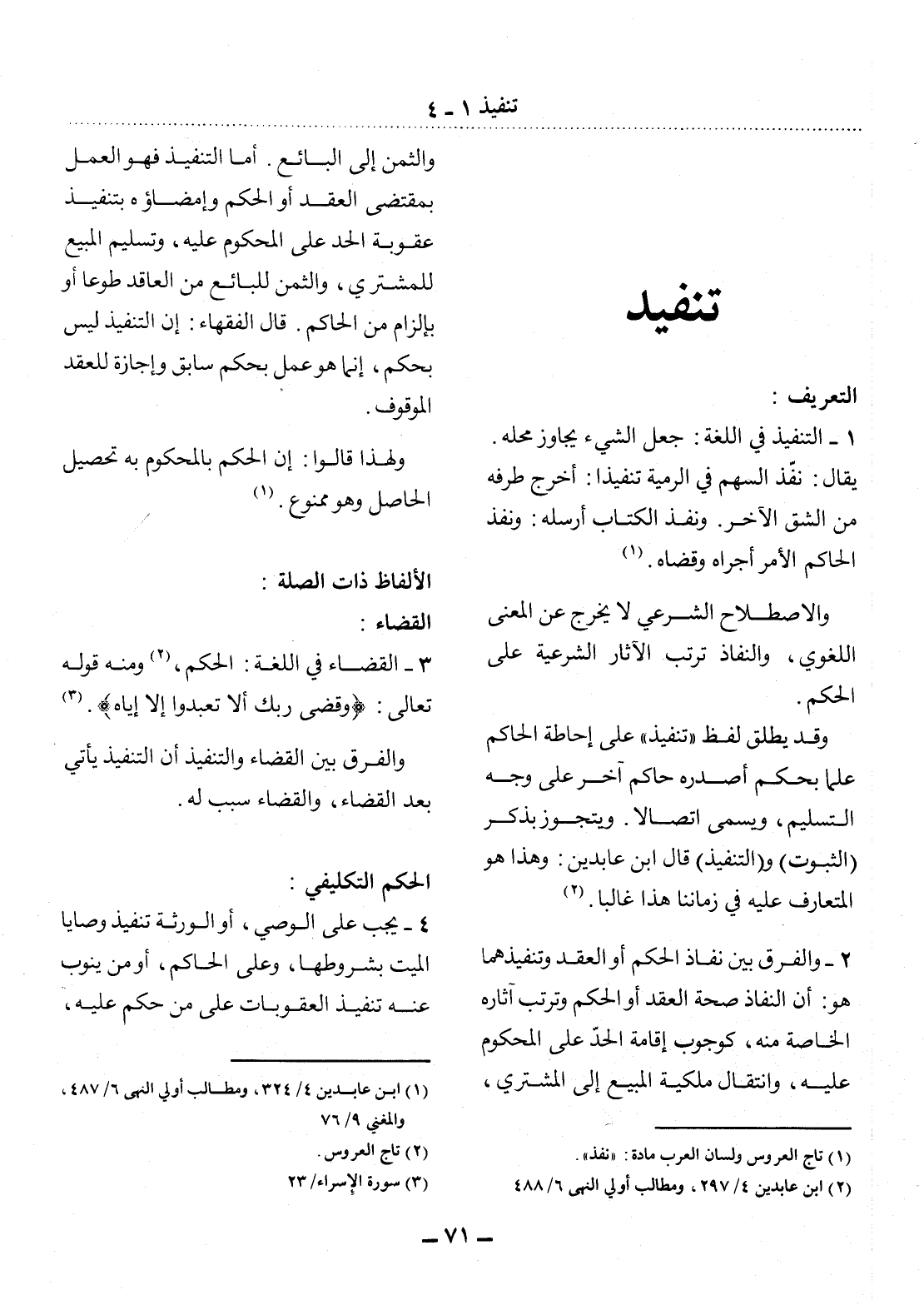 (1) تاج العروس ولسان العرب مادة: " نفذ ".