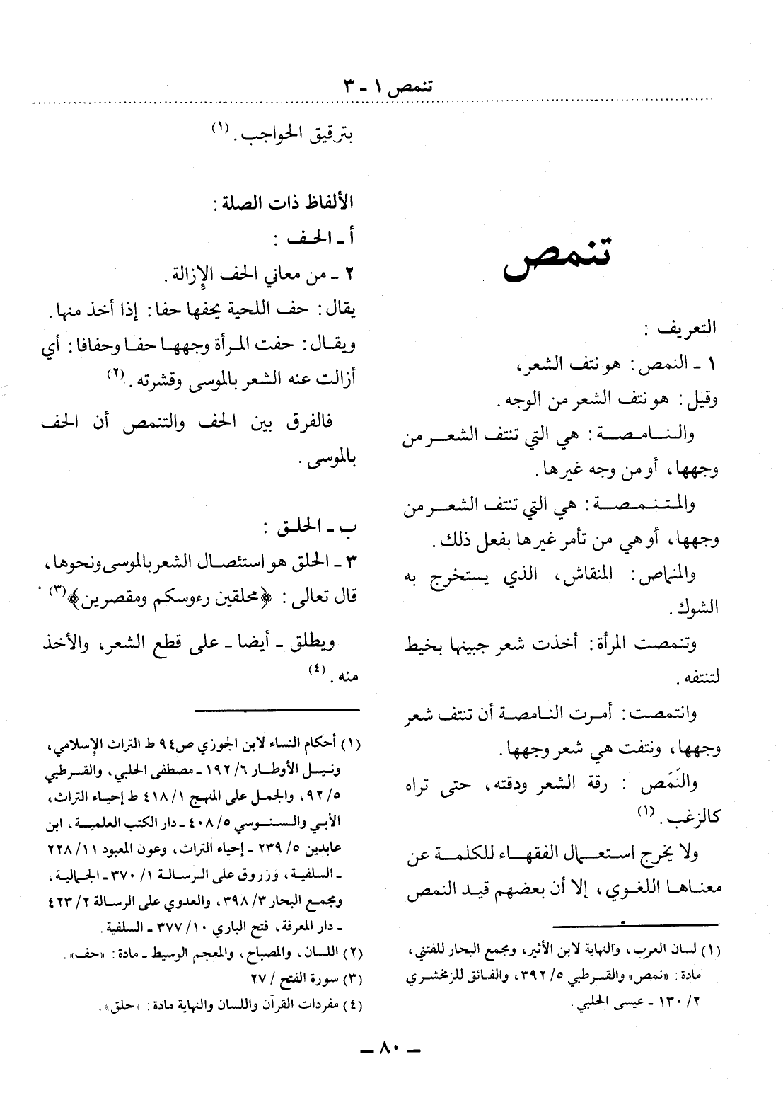 (1) لسان العرب، والنهاية لابن الأثير، ومجمع البحار للفتني، مادة: " نمص " والقرطبي 5 / 392، والفائق للزمخشري 2 / 130 عيسى الحلبي.