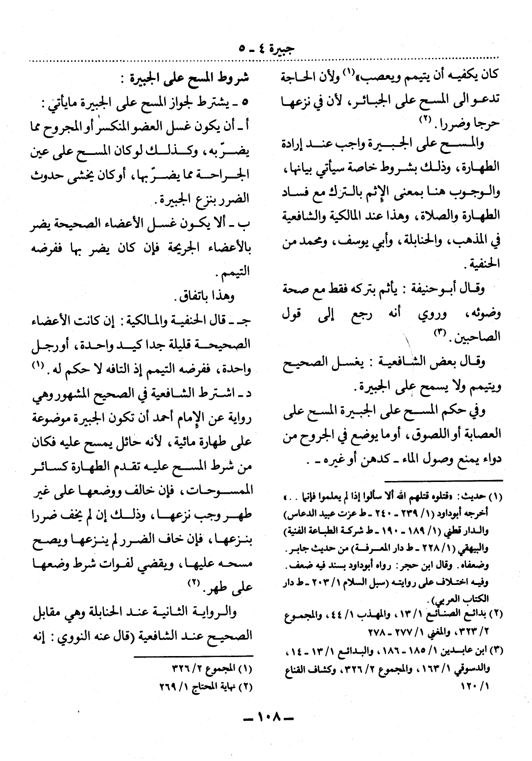 5 - يُشْتَرَطُ لِجَوَازِ الْمَسْحِ عَلَى الْجَبِيرَةِ مَا يَأْتِي: