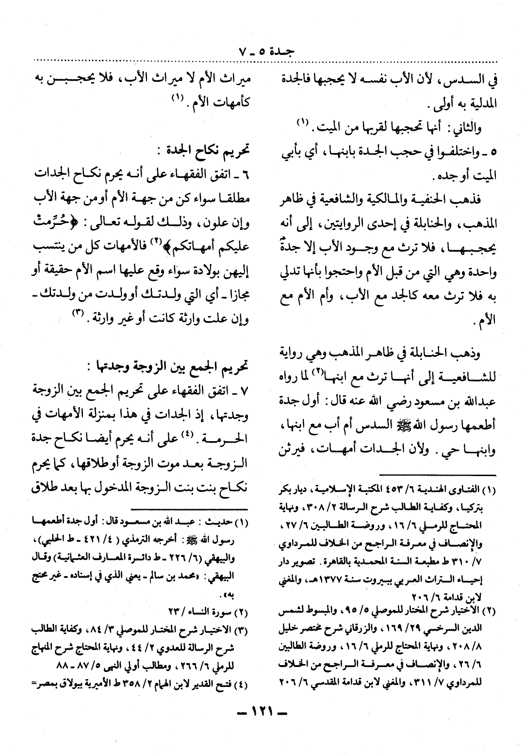 5 - وَاخْتَلَفُوا فِي حَجْبِ الْجَدَّةِ بِابْنِهَا، أَيْ بِأَبِي الْمَيِّتِ أَوْ جَدِّهِ.