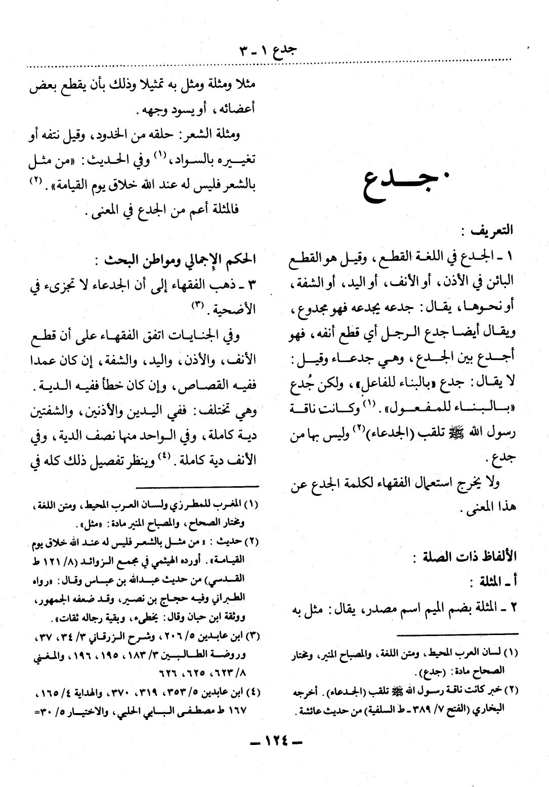 (1) لسان العرب المحيط، ومتن اللغة، والمصباح المنير، ومختار الصحاح مادة: (جدع) .