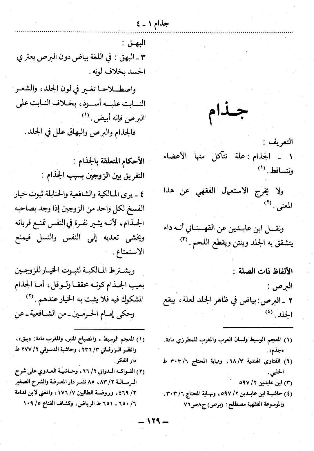(4) حاشية ابن عابدين 2 / 597، ونهاية المحتاج 6 / 303، والموسوعة الفقهية مصطلح: (برص) ج 8 ص 76.