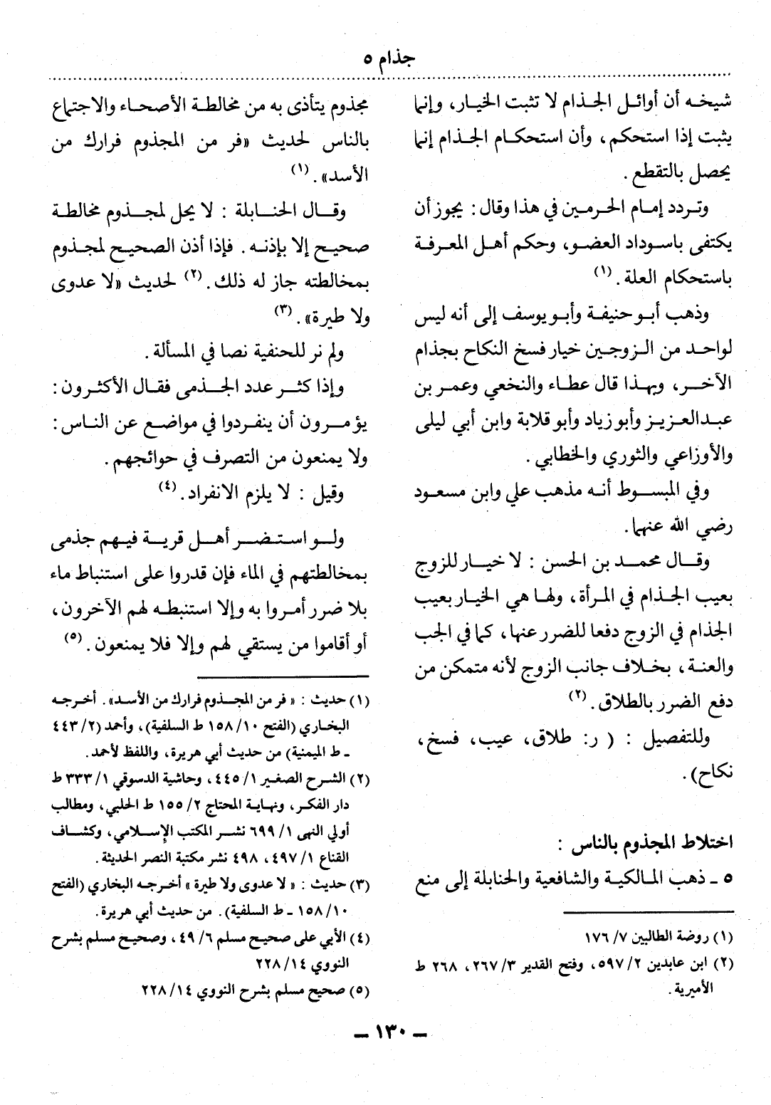 مَجْذُومٍ يُتَأَذَّى بِهِ مِنْ مُخَالَطَةِ الأَْصِحَّاءِ وَالاِجْتِمَاعِ بِالنَّاسِ لِحَدِيثِ فِرَّ مِنَ الْمَجْذُومِ فِرَارَكَ مِنَ الأَْسَدِ (1) .