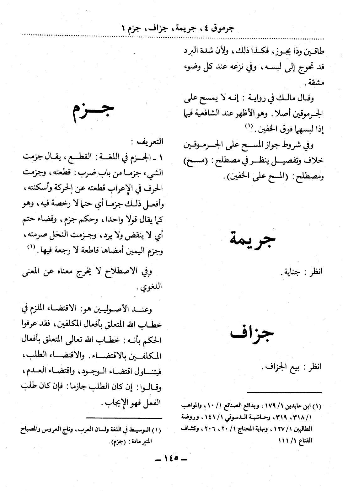(1) الوسيط في اللغة ولسان العرب، وتاج العروس والمصباح المنير مادة: (جزم) .