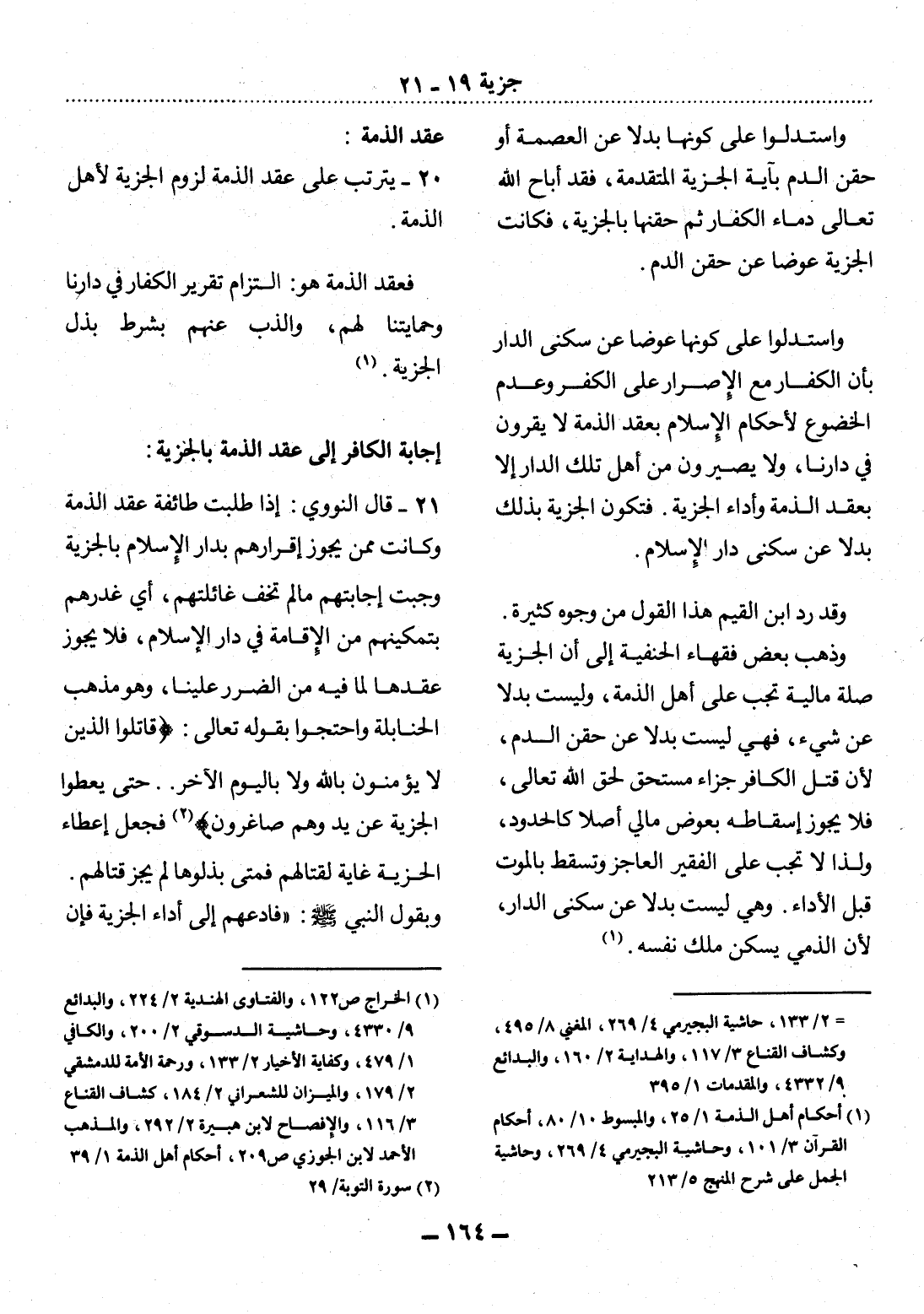 20 - يَتَرَتَّبُ عَلَى عَقْدِ الذِّمَّةِ لُزُومُ الْجِزْيَةِ لأَِهْل الذِّمَّةِ.