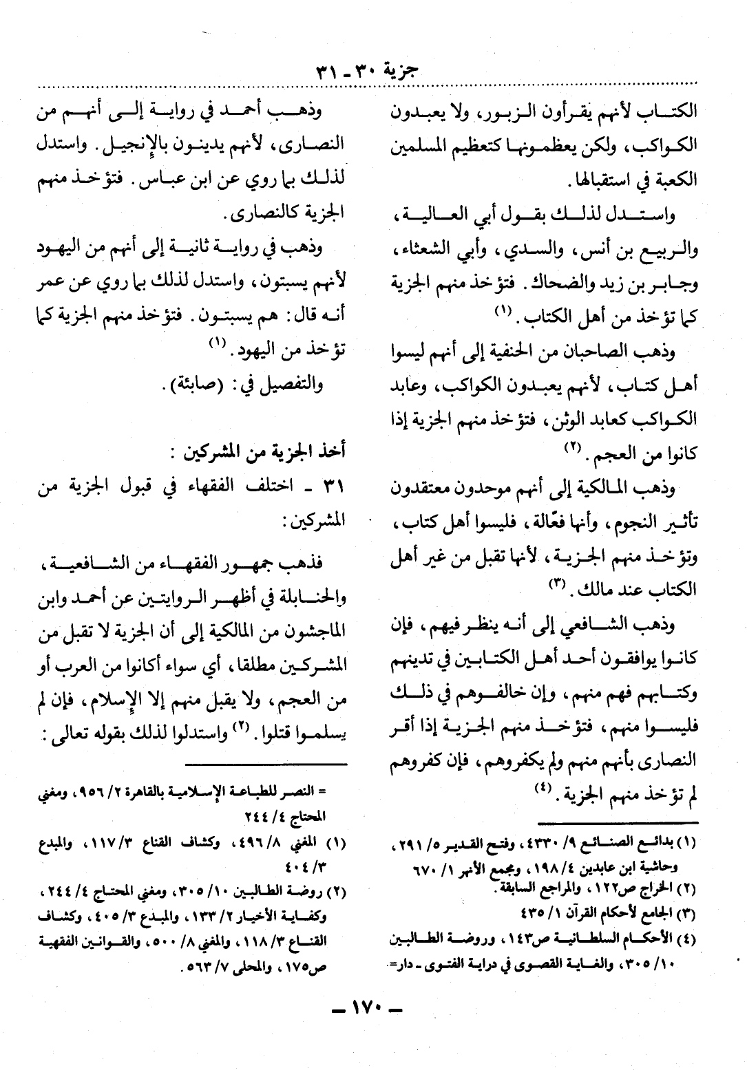 31 - اخْتَلَفَ الْفُقَهَاءُ فِي قَبُول الْجِزْيَةِ مِنَ الْمُشْرِكِينَ: