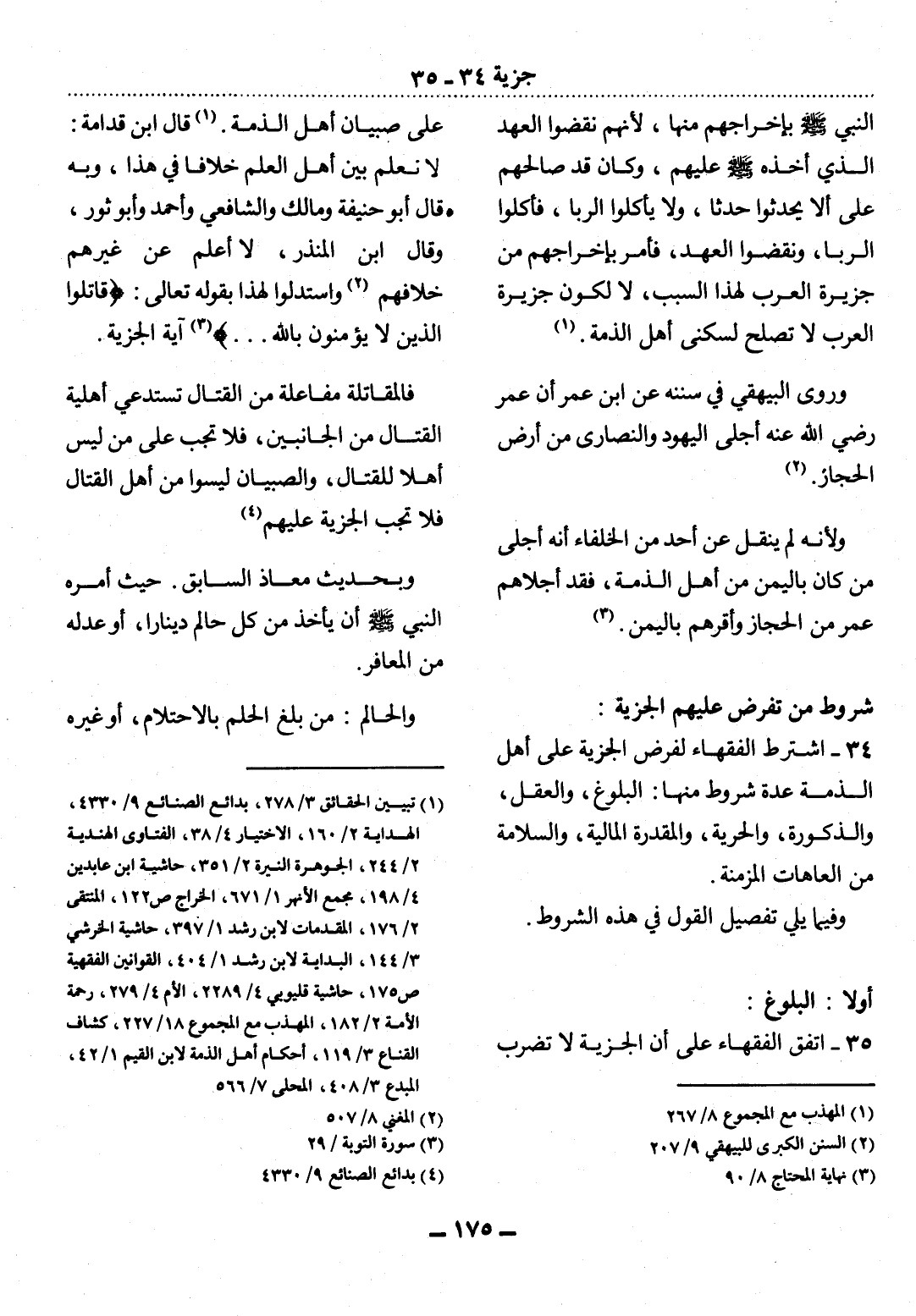 35 - اتَّفَقَ الْفُقَهَاءُ عَلَى أَنَّ الْجِزْيَةَ لاَ تُضْرَبُ