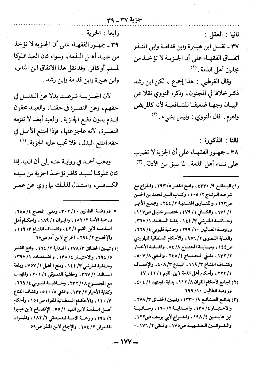 37 - نَقَل ابْنُ هُبَيْرَةَ وَابْنُ قُدَامَةَ وَابْنُ الْمُنْذِرِ اتِّفَاقَ الْفُقَهَاءِ عَلَى أَنَّ الْجِزْيَةَ لاَ تُؤْخَذُ مِنْ مَجَانِينِ أَهْل الذِّمَّةِ (1) .