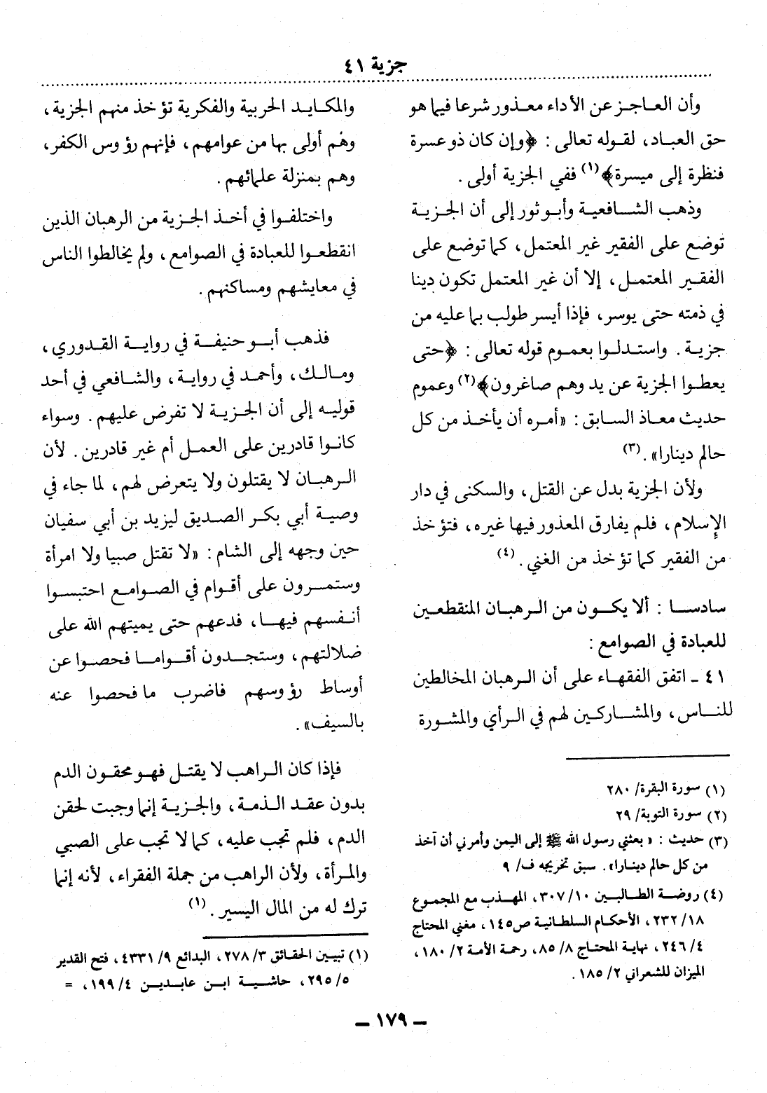 41 - اتَّفَقَ الْفُقَهَاءُ عَلَى أَنَّ الرُّهْبَانَ الْمُخَالِطِينَ لِلنَّاسِ، وَالْمُشَارِكِينَ لَهُمْ فِي الرَّأْيِ وَالْمَشُورَةِ