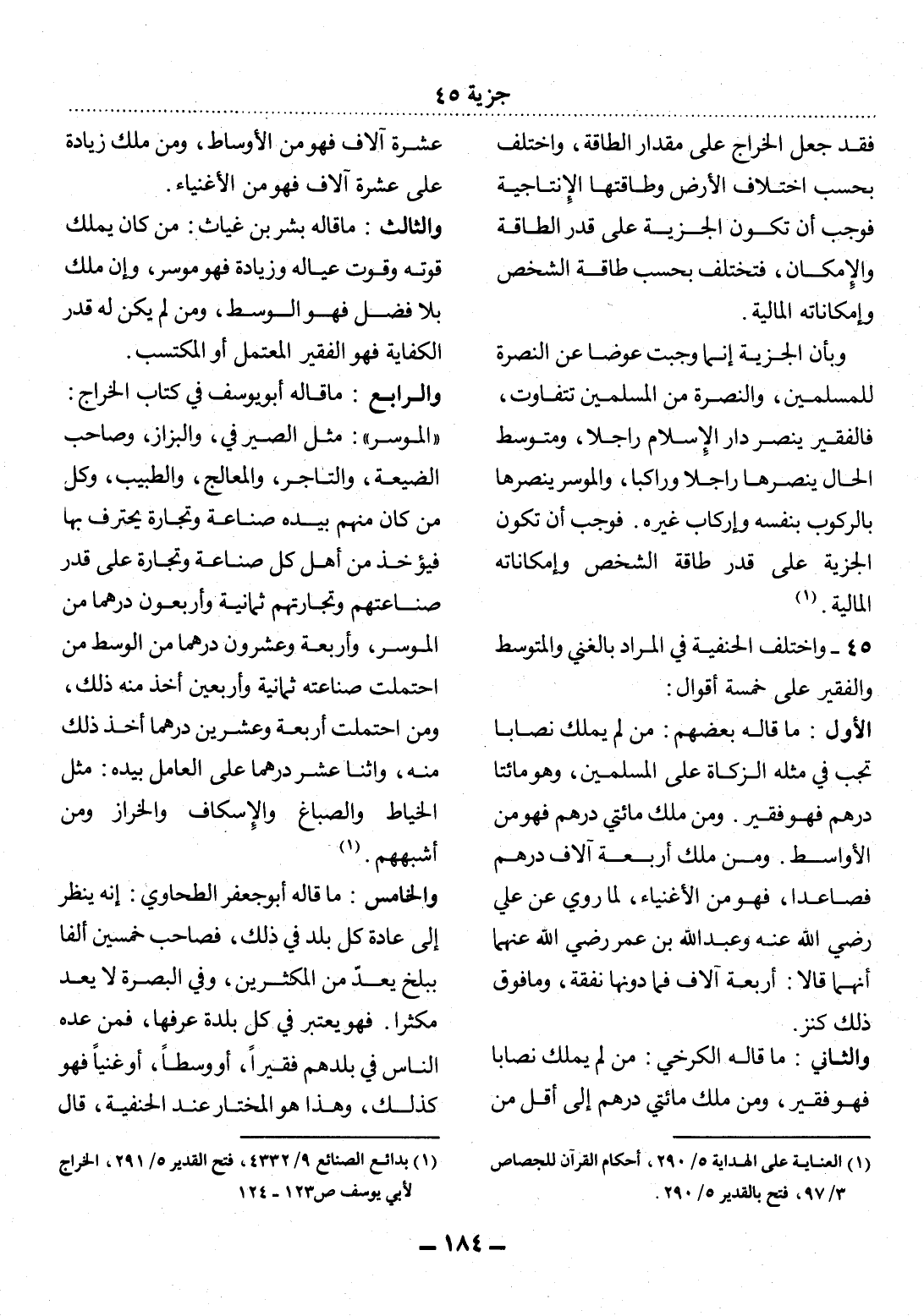 (1) بدائع الصنائع 9 / 4332، فتح القدير 5 / 219، الخراج لأبي يوسف ص 123 - 124.
