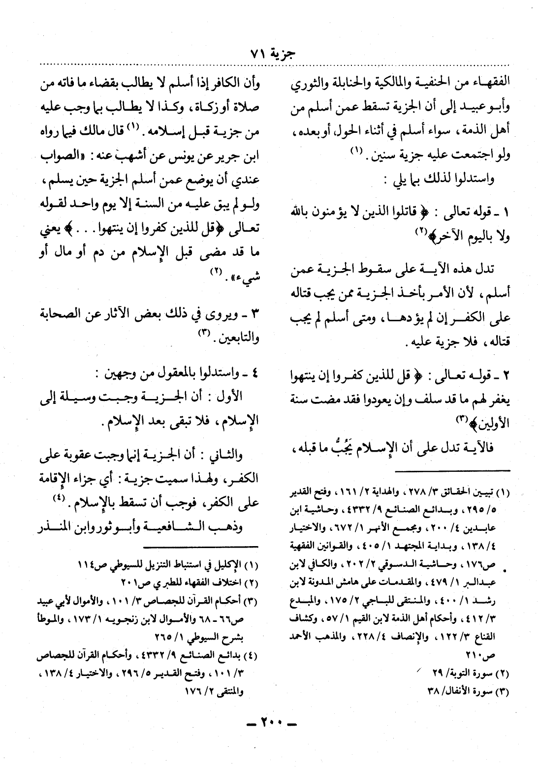 1 - قَوْله تَعَالَى: {قَاتِلُوا الَّذِينَ لاَ يُؤْمِنُونَ بِاللَّهِ وَلاَ بِالْيَوْمِ الآْخِرِ} (2)