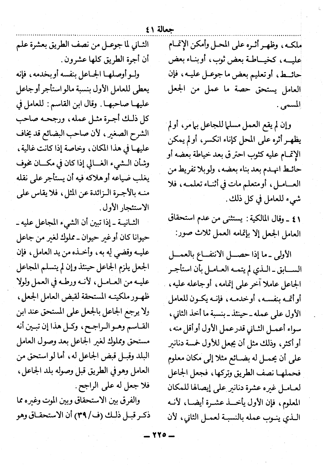 41 - وَقَال الْمَالِكِيَّةُ: يُسْتَثْنَى مِنْ عَدَمِ اسْتِحْقَاقِ الْعَامِل الْجُعْل إِلاَّ بِإِتْمَامِهِ الْعَمَل ثَلاَثُ صُوَرٍ: