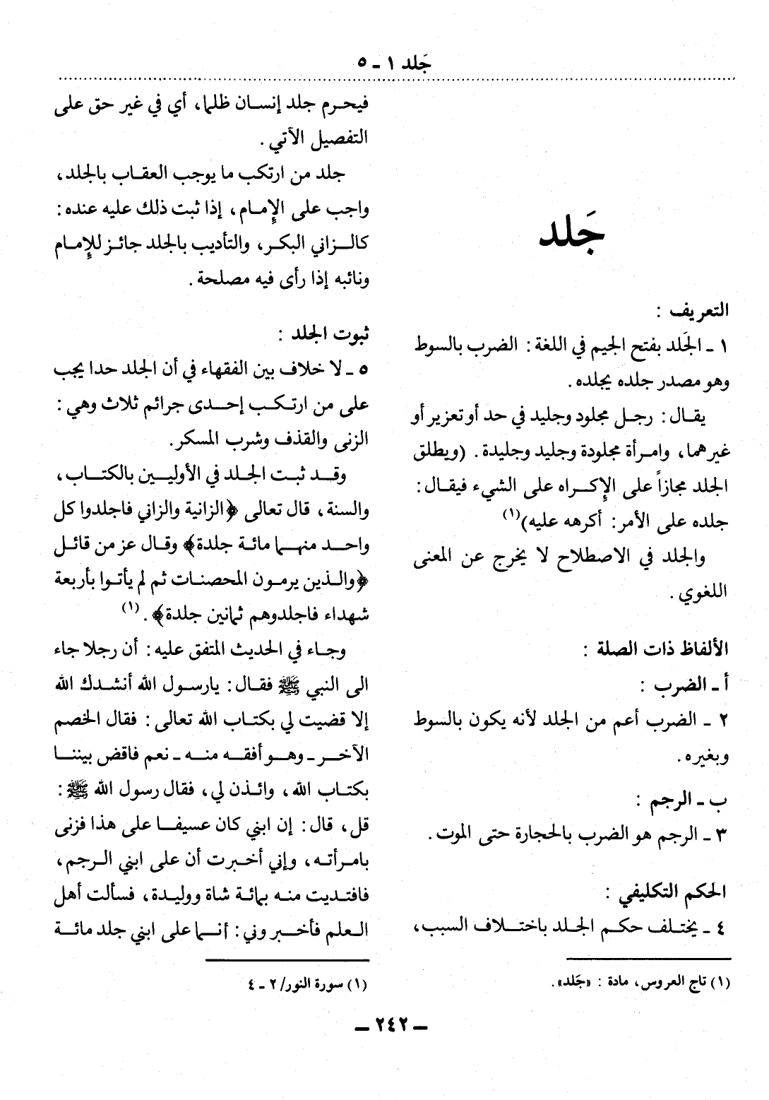 1 - الْجَلْدُ بِفَتْحِ الْجِيمِ فِي اللُّغَةِ: الضَّرْبُ بِالسَّوْطِ وَهُوَ مَصْدَرُ جَلَدَهُ يَجْلِدُهُ