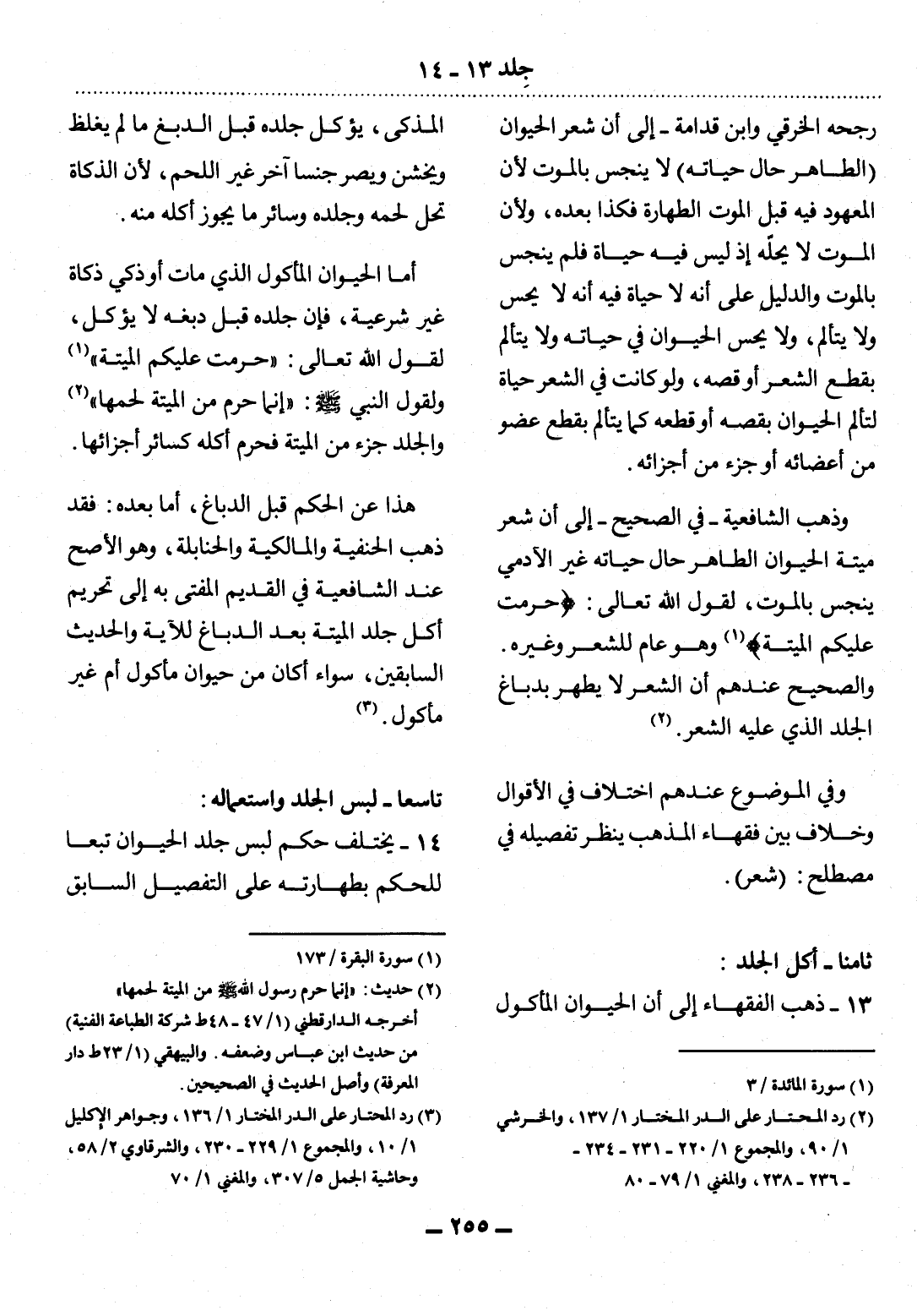 13 - ذَهَبَ الْفُقَهَاءُ إِلَى أَنَّ الْحَيَوَانَ الْمَأْكُول