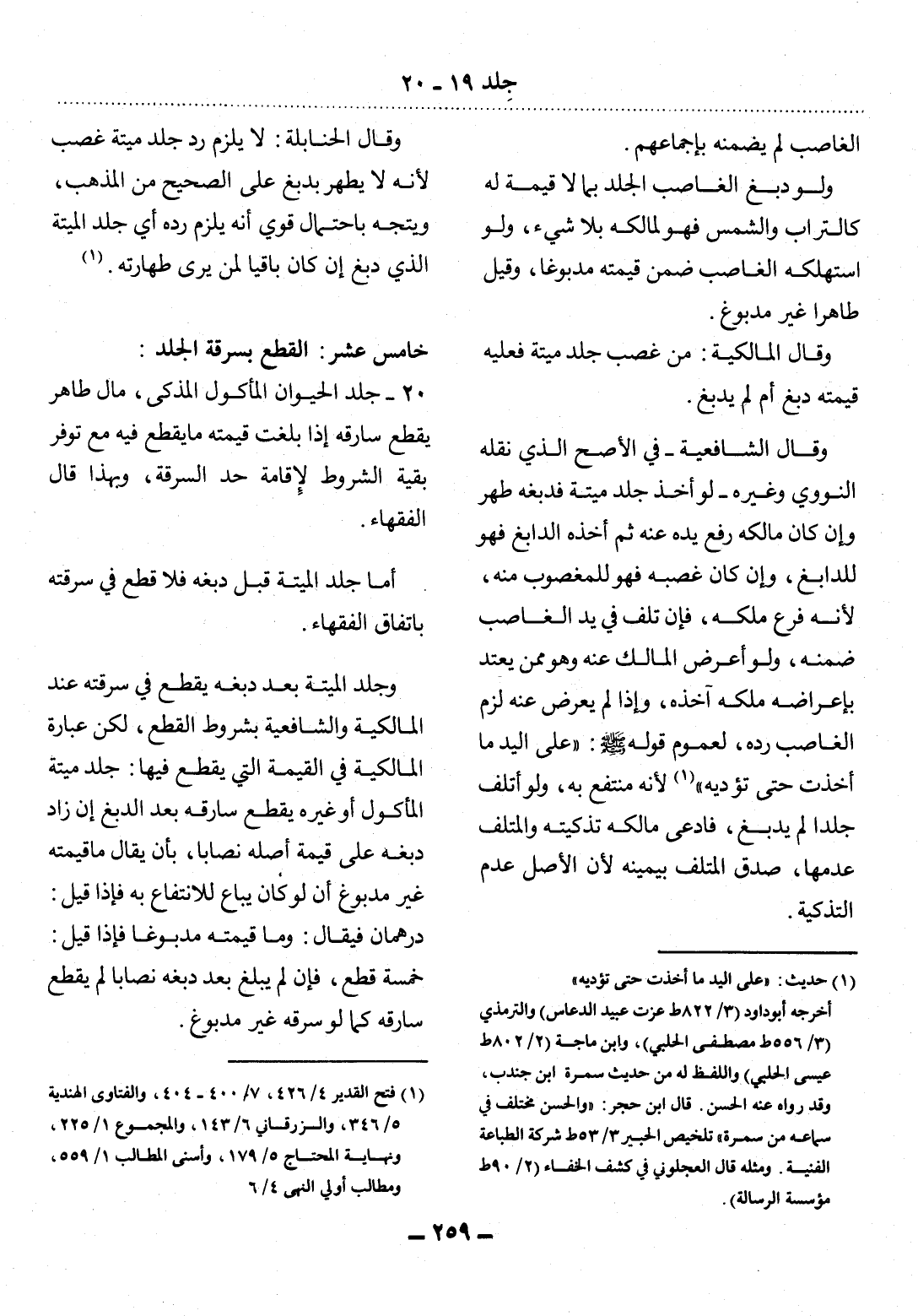 (1) حديث: " على اليد ما أخذت حتى تؤديه " أخرجه أبو داود (3 / 822 ط عزت عبيد الدعاس) والترمذي (3 / 556 ط مصطفى الحلبي) ، وابن ماجه (2 / 802 ط عيسى الحلبي) واللفظ له من حديث سمرة بن جندب، وقد رواه عنه الحسن. قال ابن حجر: " والحسن مختلف في سماعه من سمرة " تلخيص الحبير 3 / 53 ط شركة الطباعة الفنية. ومثله قال العجلوني في كشف الخفاء (2 / 90 ط مؤسسة الرسالة) .