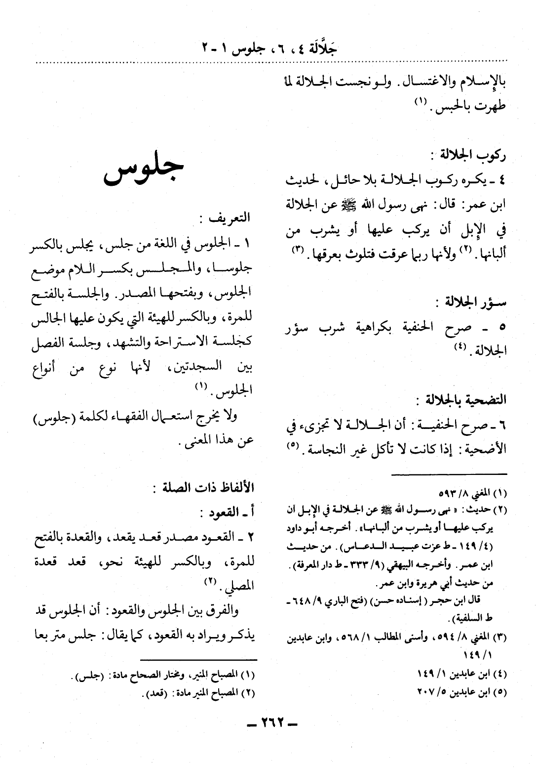(1) المصباح المنير، ومختار الصحاح مادة: (جلس) .