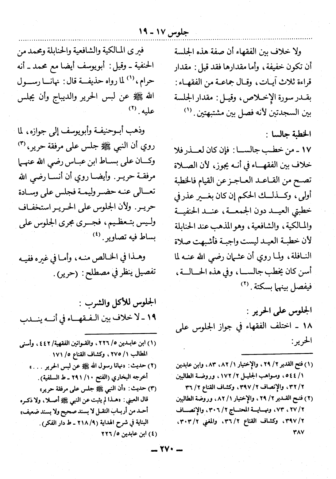 18 - اخْتَلَفَ الْفُقَهَاءُ فِي جَوَازِ الْجُلُوسِ عَلَى الْحَرِيرِ: