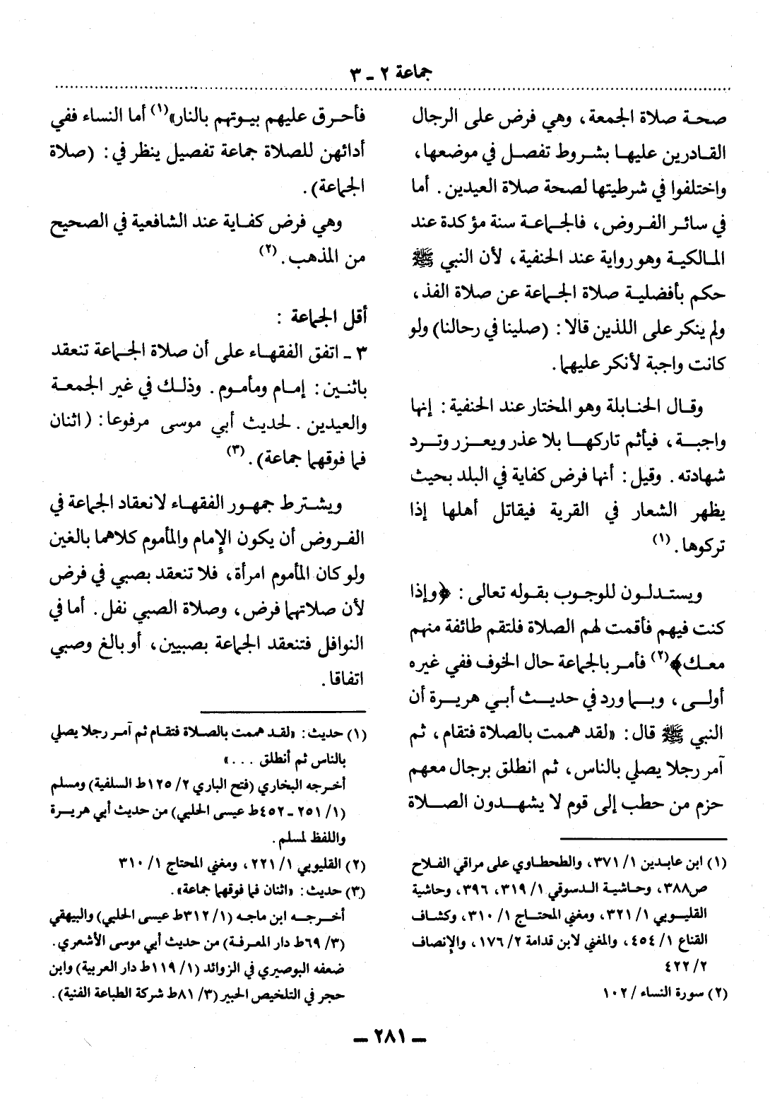 (2) سورة النساء / 102.