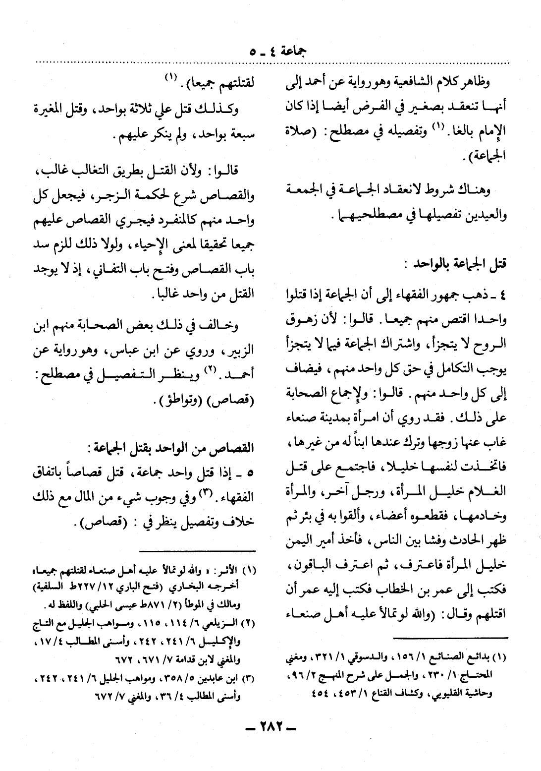 (1) الأثر: " والله لو تمالأ عليه أهل صنعاء لقتلتهم جميعا " أخرجه البخاري (فتح الباري 12 / 227 ط السلفية) ومالك في الموطأ (2 / 871 ط عيسى الحلبي) واللفظ له.