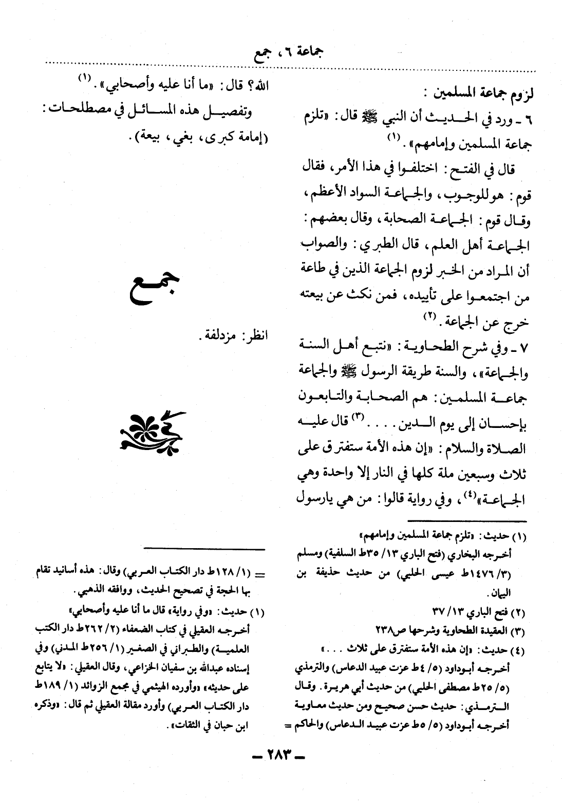 (1) حديث: " تلزم جماعة المسلمين وإمامهم " أخرجه البخاري (فتح الباري 13 / 35 ط السلفية) ومسلم (3 / 1476 ط عيسى الحلبي) من حديث حذيفة بن اليمان.