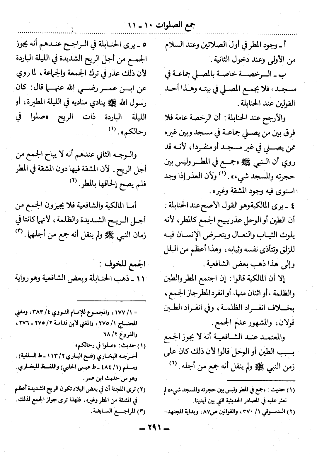 (1) حديث: " جمع في المطر وليس بين حجرته والمسجد شيء " لم نعثر عليه في المصادر الحديثية التي بين أيدينا.