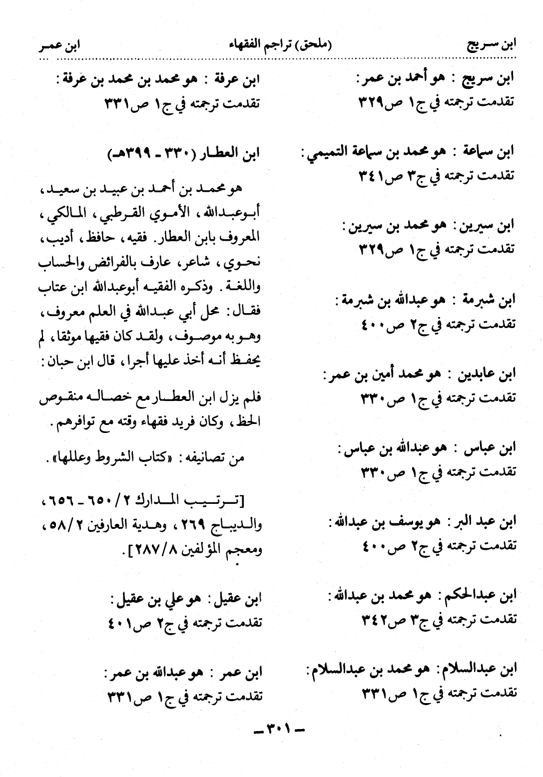 هو محمد بن أحمد بن عبيد بن سعيد، أبو عبد الله، الأموي القرطبي، المالكي، المعروف بابن العطار. فقيه، حافظ، أديب، نحوي، شاعر، عارف بالفرائض والحساب واللغة. وذكره الفقيه أبو عبد الله ابن عتاب فقال: محل أبي عبد الله في العلم معروف، وهو به موصوف، ولقد كان فقيها موثقا، لم يحفظ أنه أخذ عليها أجرا، قال ابن حبان: فلم يزل ابن العطار مع خصاله منقوص الحظ، وكان فريد فقهاء وقته مع توافرهم. من تصانيفه: " كتاب الشروط وعللها ". [ترتيب المدارك 2 / 650 - 656، والديباج 269، وهدية العارفين 2 / 58، ومعجم المؤلفين 8 / 287] .