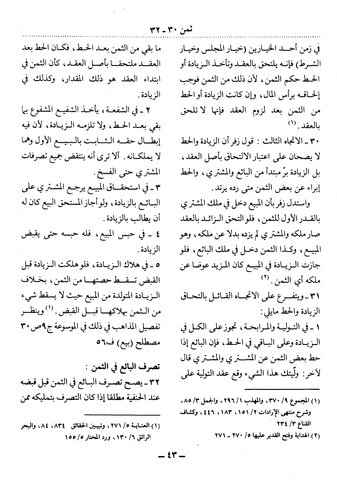 31 - وَيَتَفَرَّعُ عَلَى الاِتِّجَاهِ الْقَائِل بِالْتِحَاقِ الزِّيَادَةِ وَالْحَطِّ مَا يَلِي: